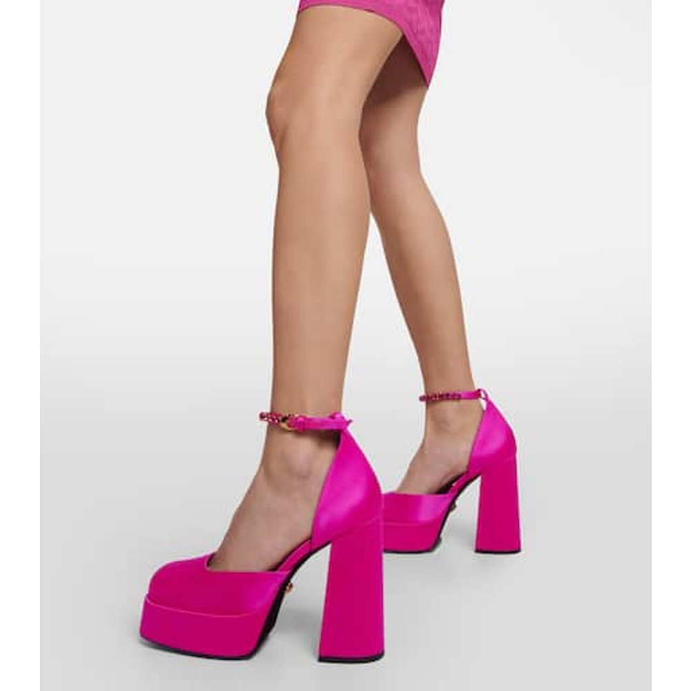 1h可退 香港直邮Versace 范思哲 女士 Medusa Aevitas 绸缎防水台