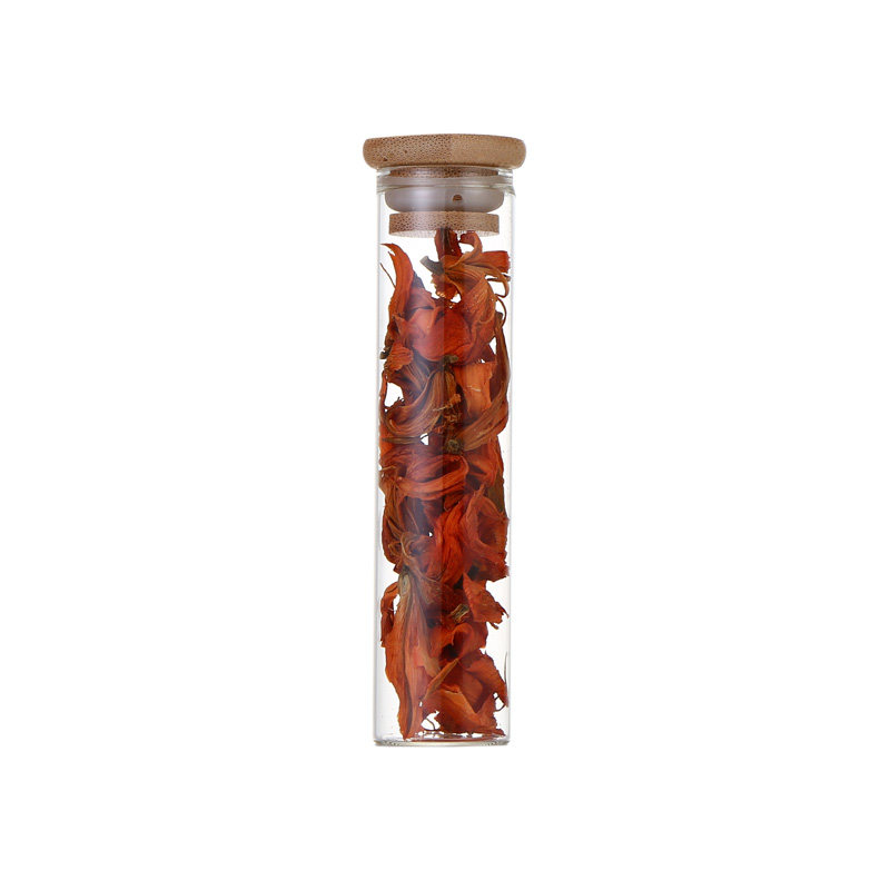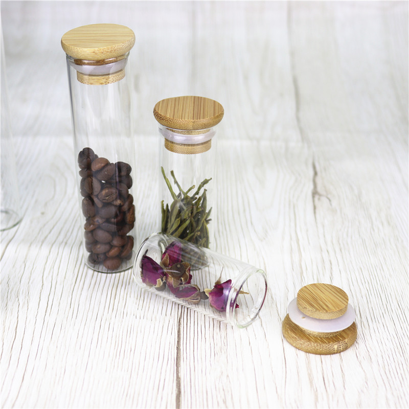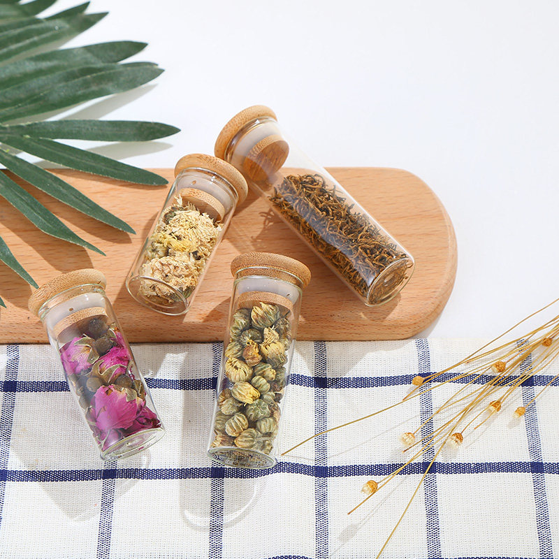 玻璃密封瓶 竹盖花茶小瓶透明管制瓶 药粉胶囊瓶藏红花沉香瓶