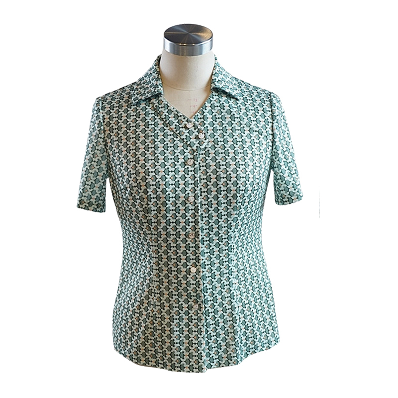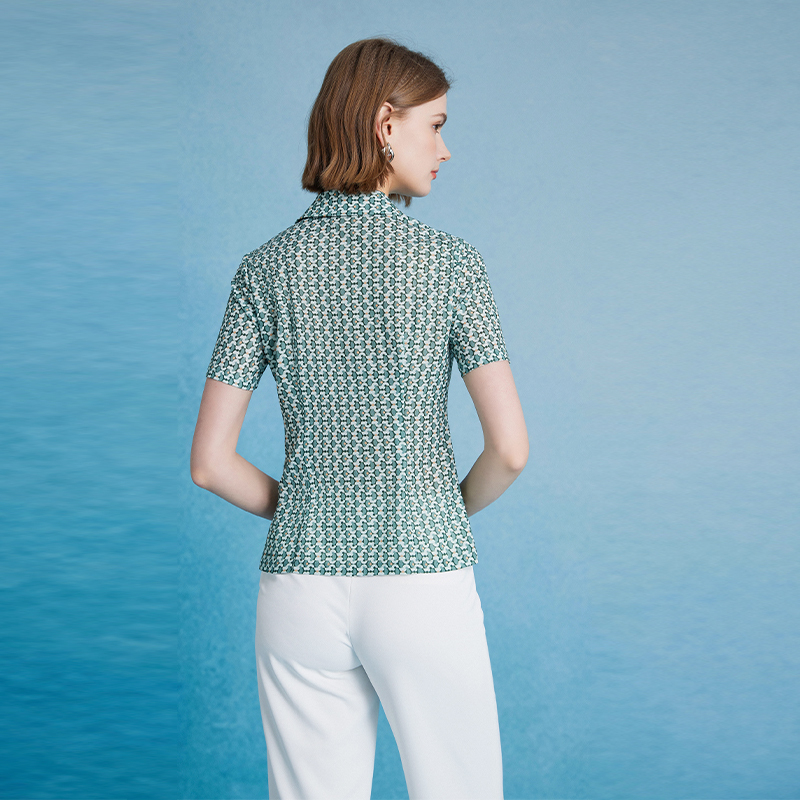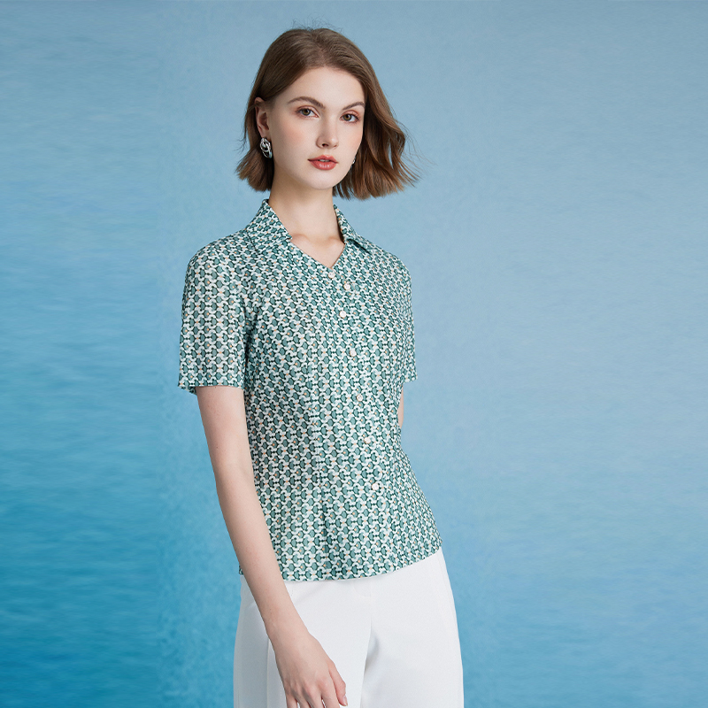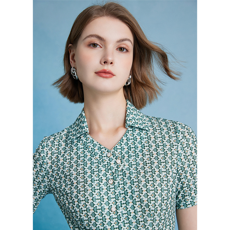 沐兰法式优雅设计感印花衬衫女2025年夏季新款减龄翻V领短袖衬衣