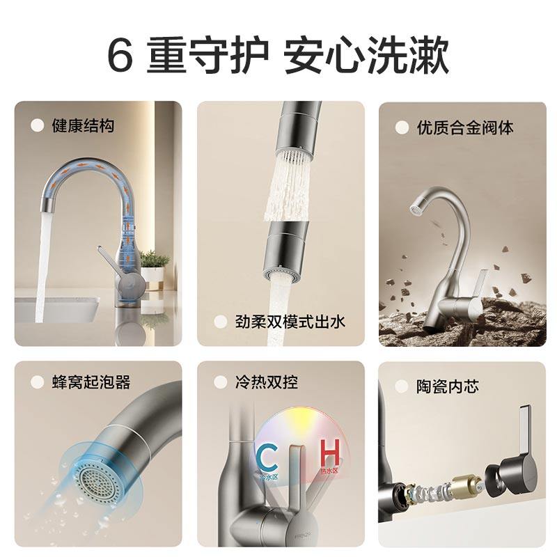 法恩莎家用洗脸盆洗手盆卫生间冷热水龙头双模式出水面盆龙头8837