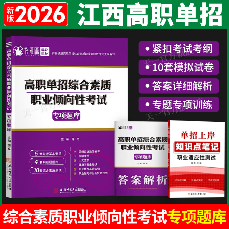 2026江西单招考试复习资料2026年语文数学综合素质职业适应性技能测试教材真题卷习题集必刷题江西省高职单招考试