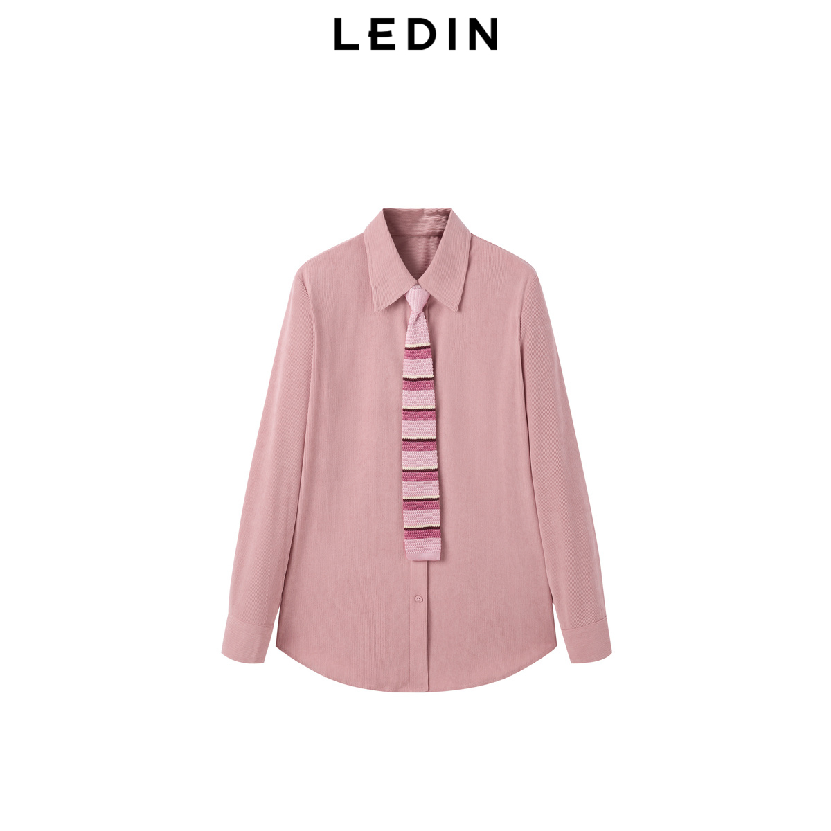 【商场同款】乐町冬季新款复古领带条纹衬衫C2CAE4101