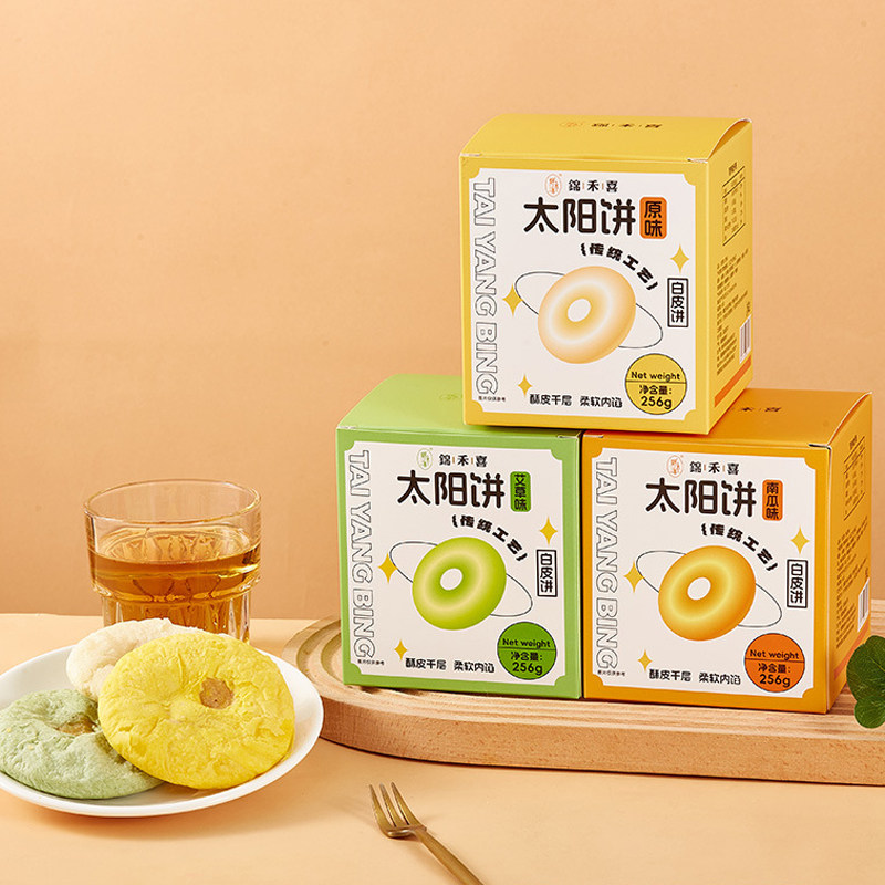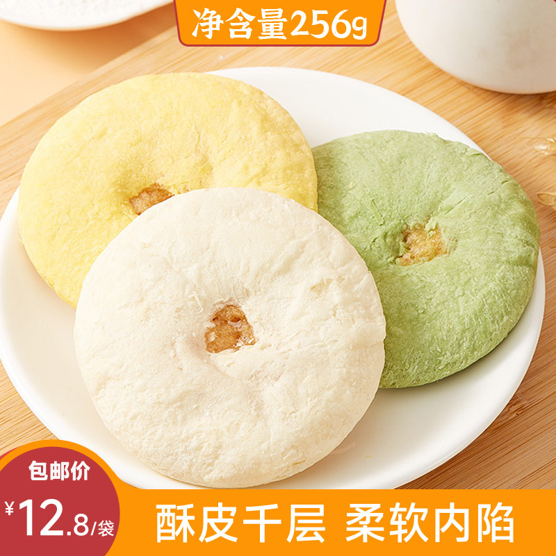 软糯微甜白皮馅饼太阳肚脐饼原味南瓜艾草味代餐传统手工糕点零食