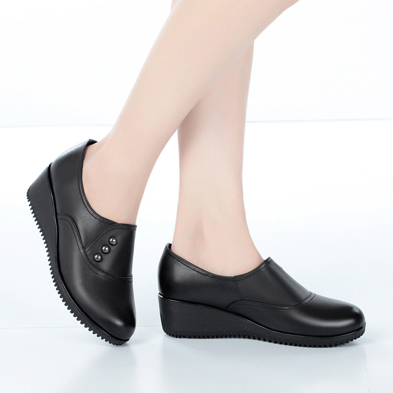 春秋款妈妈鞋皮鞋软底真皮深口单鞋女中跟中老年老年女鞋坡跟鞋子
