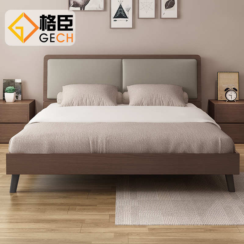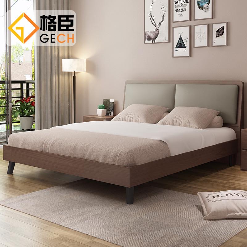 现代简约床 小户型卧室实木床 北欧主卧经济型1.5米板式大床