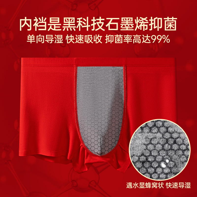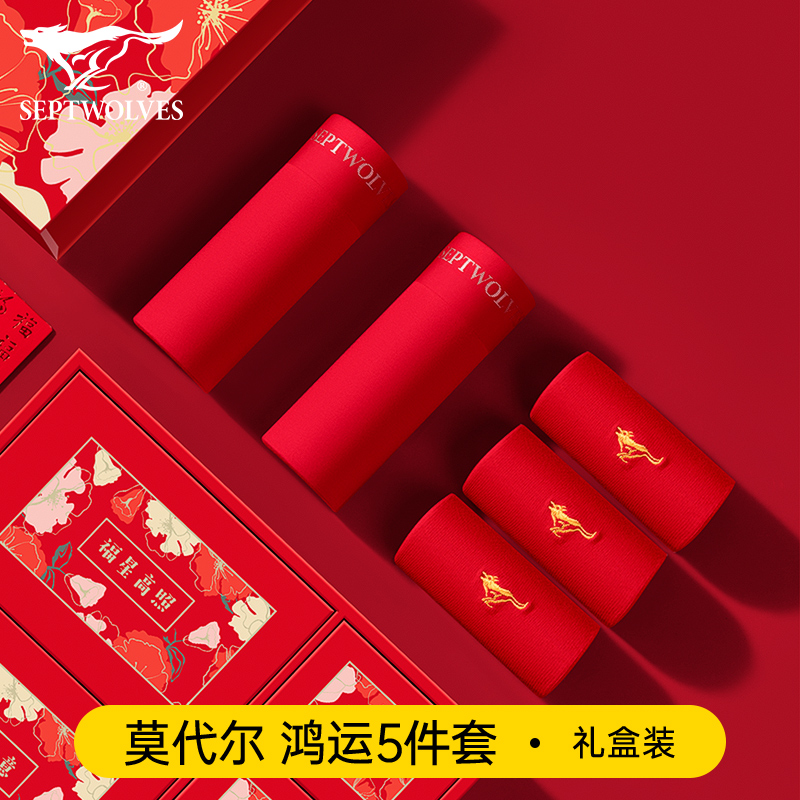 七匹狼马年本命年礼物男士内衣套装莫代尔大红色男生内裤袜子套装