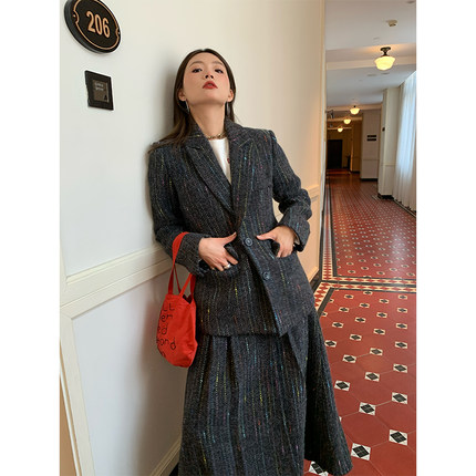 落落狷介冬装搭配一整套秋冬款女毛呢西装套装裙小个子穿搭半身裙