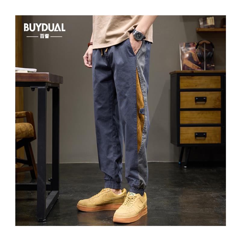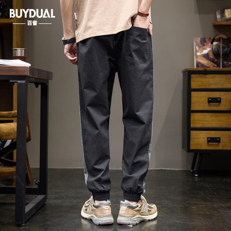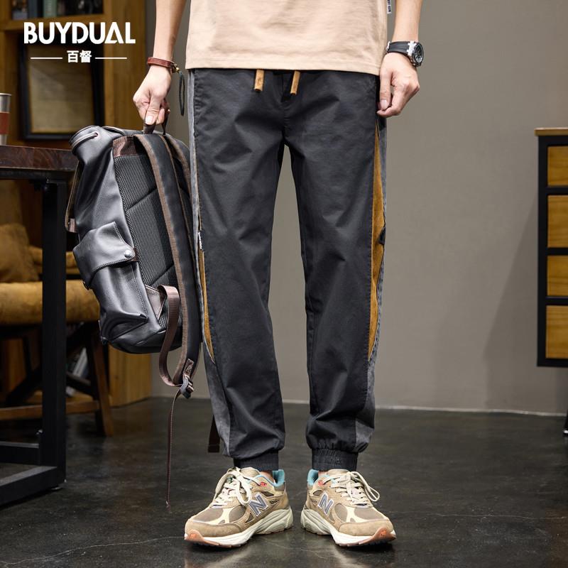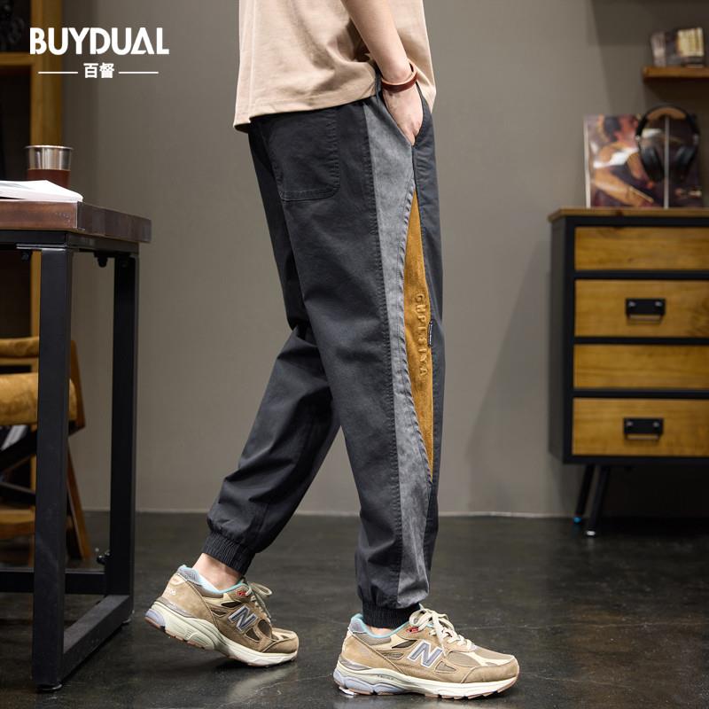 设计感撞色拼接束脚休闲裤男士潮牌痞帅工装裤春季宽松弹力哈伦裤