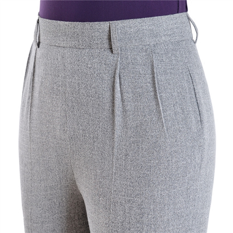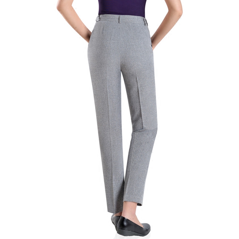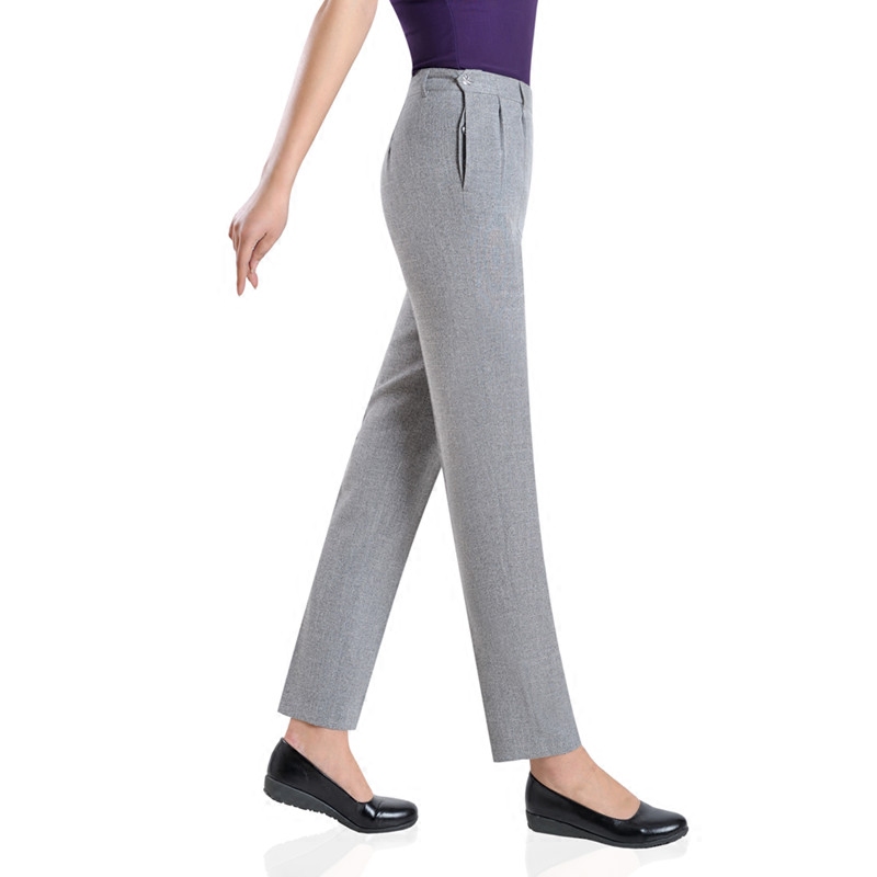 棉麻旁开口侧开扣夏季中老年女裤大码女装妈妈装高腰宽松女式西裤