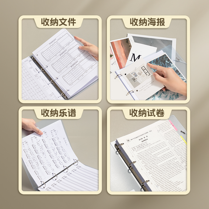 得力四孔a4活页夹打孔活页文件夹配打孔器纸夹子资料册收纳透明书夹子整理试卷加厚外壳插页袋装订纸夹大容量