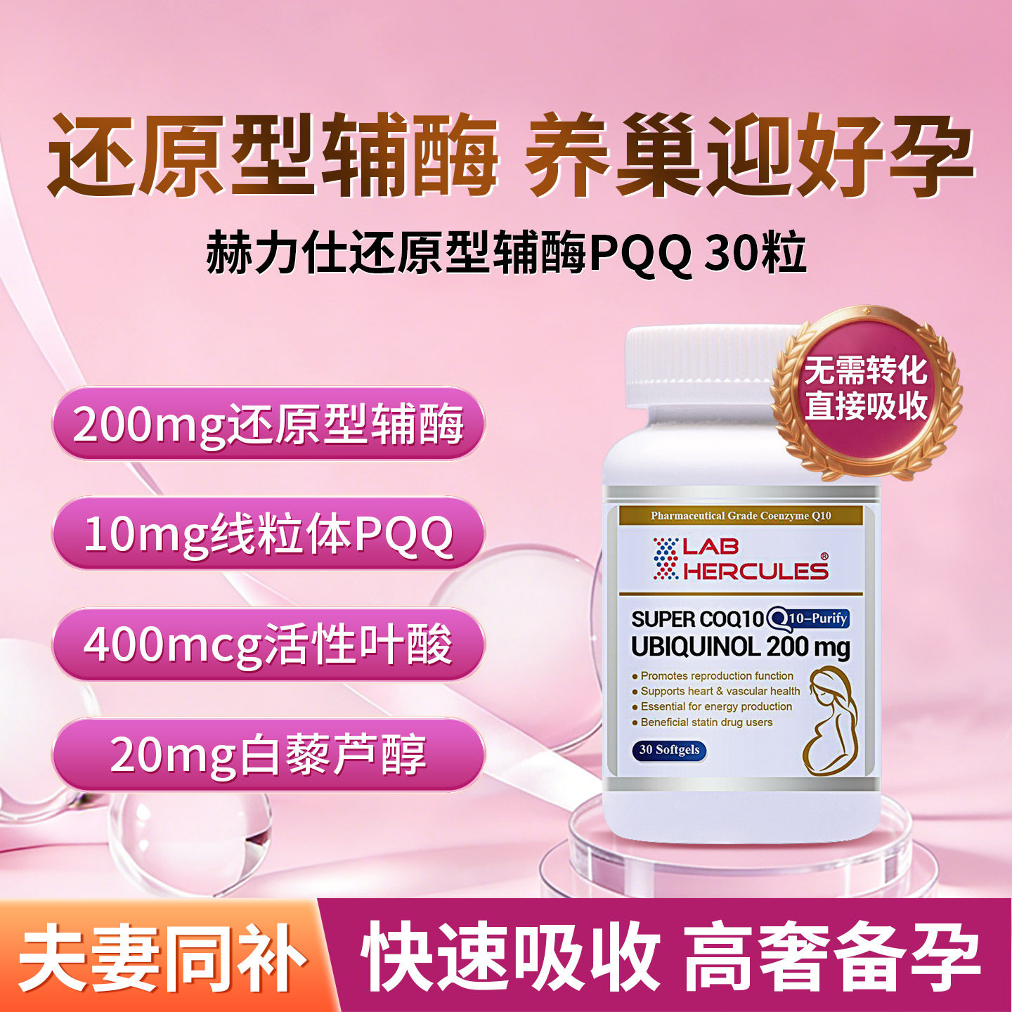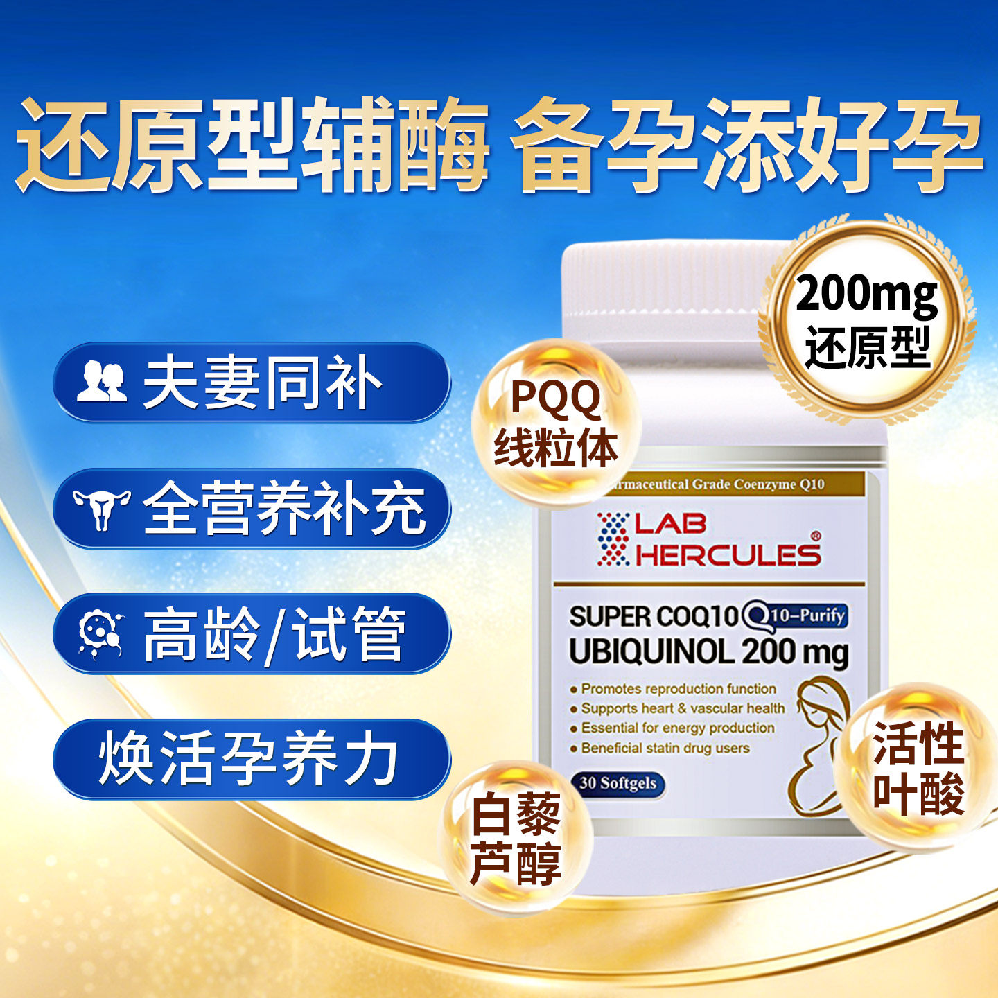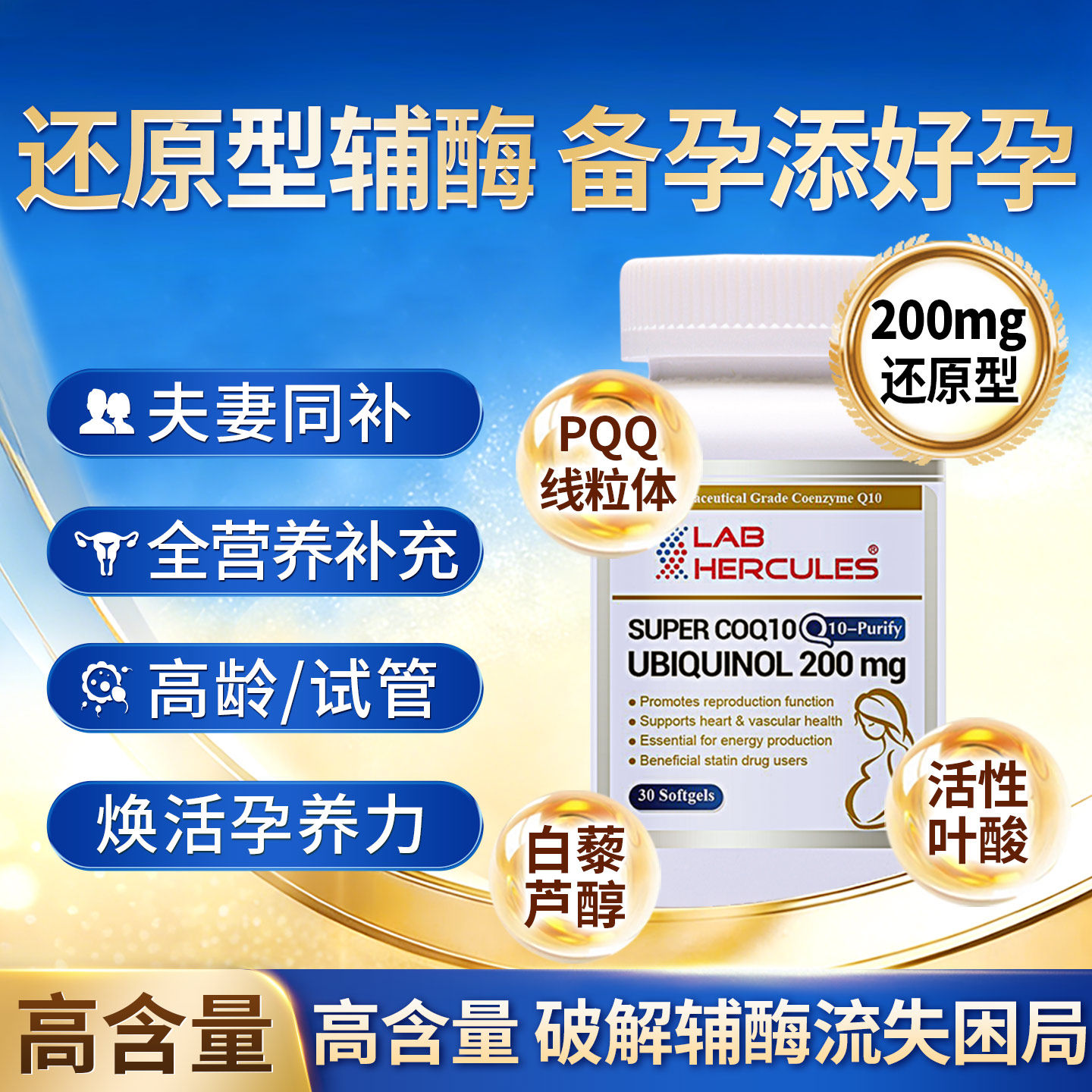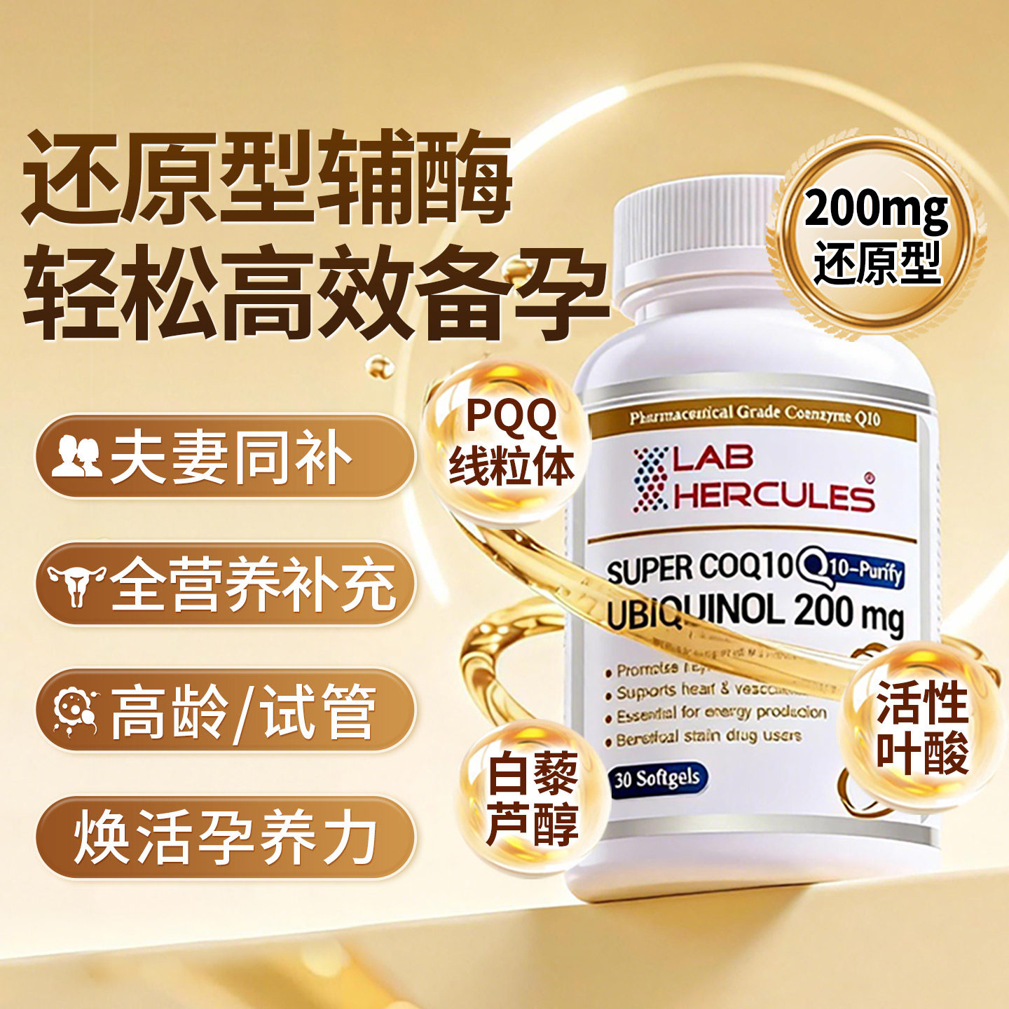 赫力仕还原型辅酶q10备孕PQQ泛醇200mg试管卵巢保养男女dhea胶囊