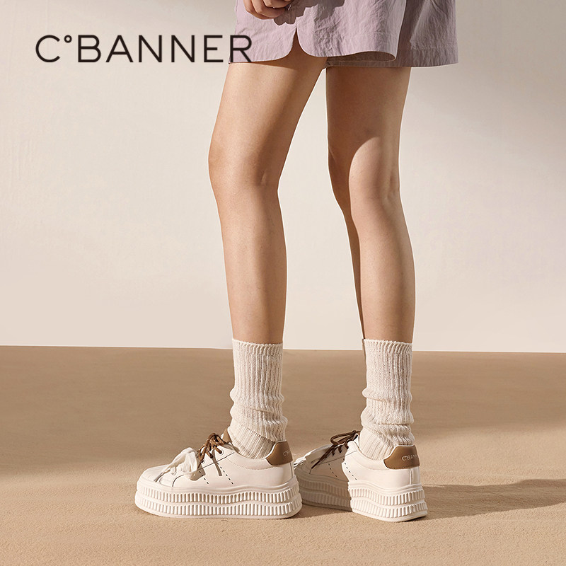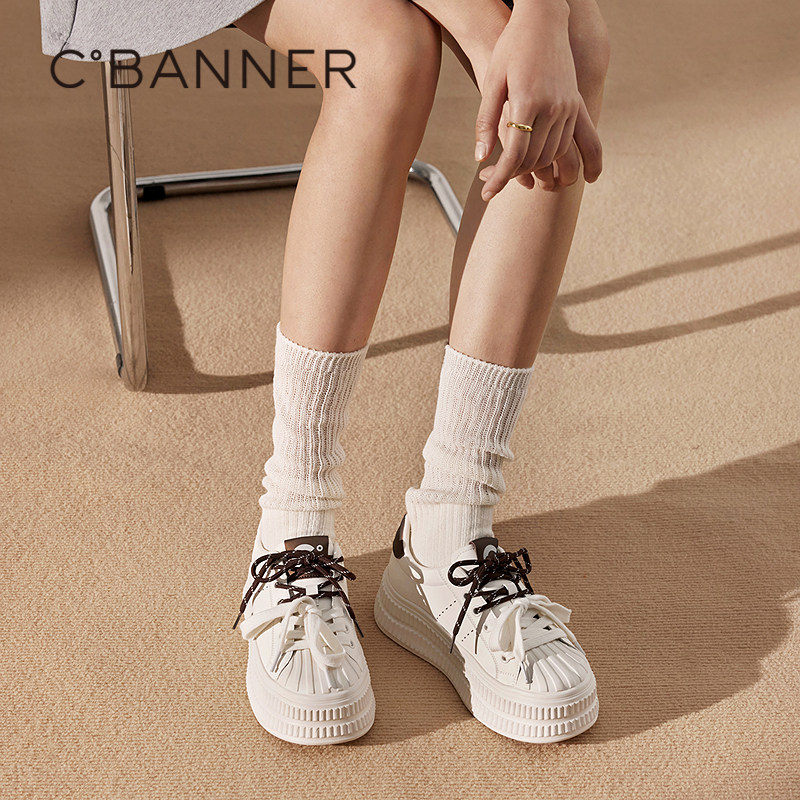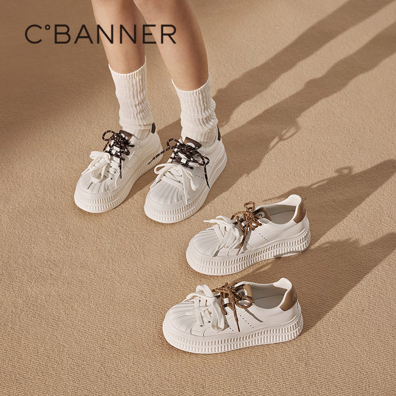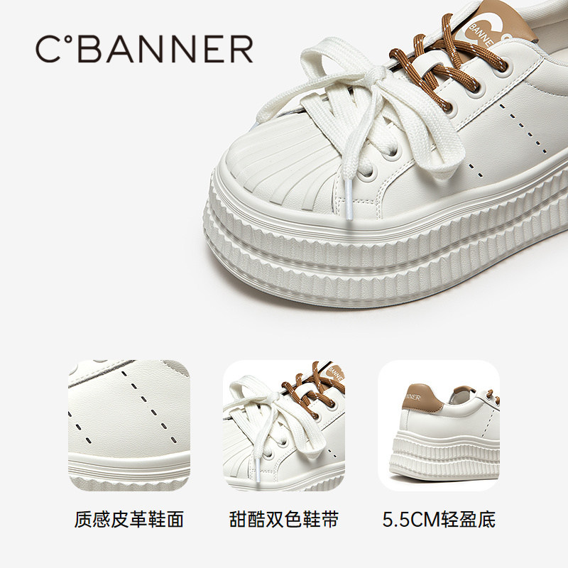 千百度厚底贝壳鞋运动休闲板鞋女款气质百搭新款增高小白鞋饼干鞋