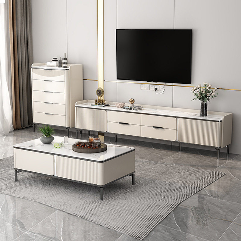 实木简约电视柜茶几边柜组合钢化玻璃烤漆高款储物柜成套家具
