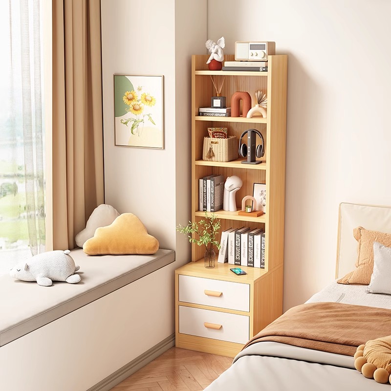 实木床头柜床边储物柜子书架落地置物架书柜靠墙杂物柜卧室小窄柜