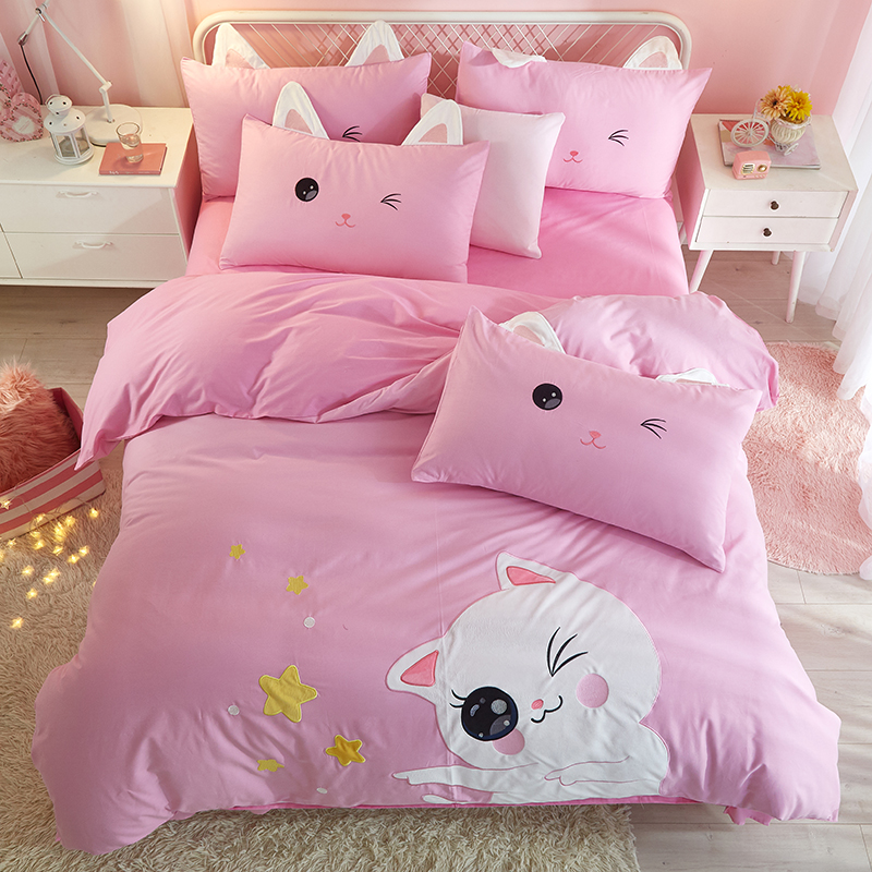 儿童床品四件套女孩纯棉粉色公主风卡通女童被套床单床笠定制1.2