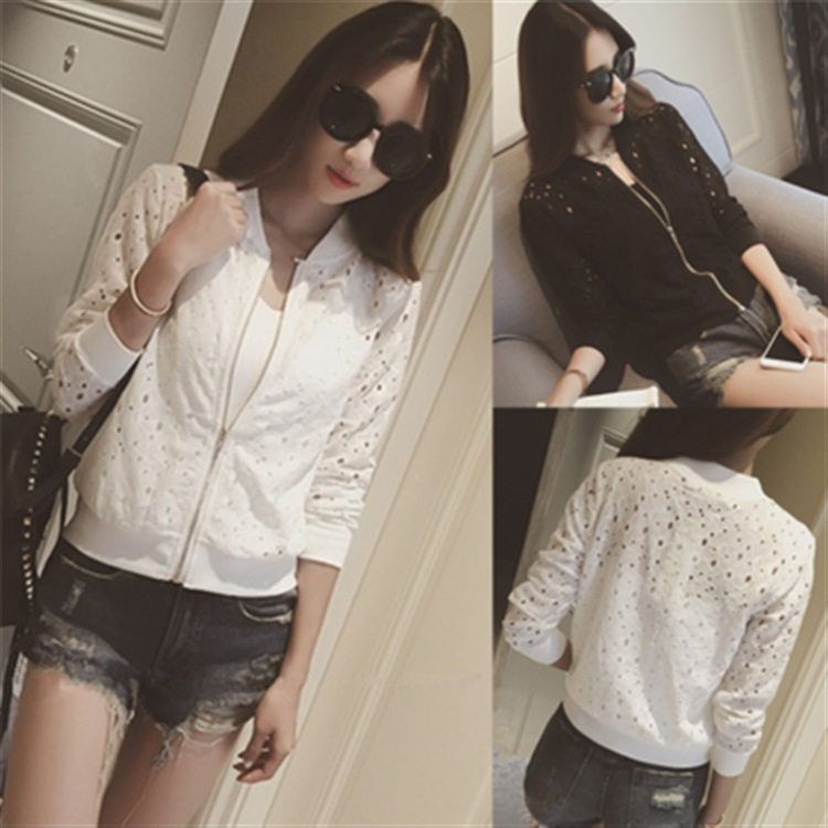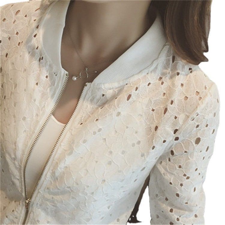 薄款服蕾丝韩版短款新款上衣女长袖女夏季批发棒球防晒衣拉链2024