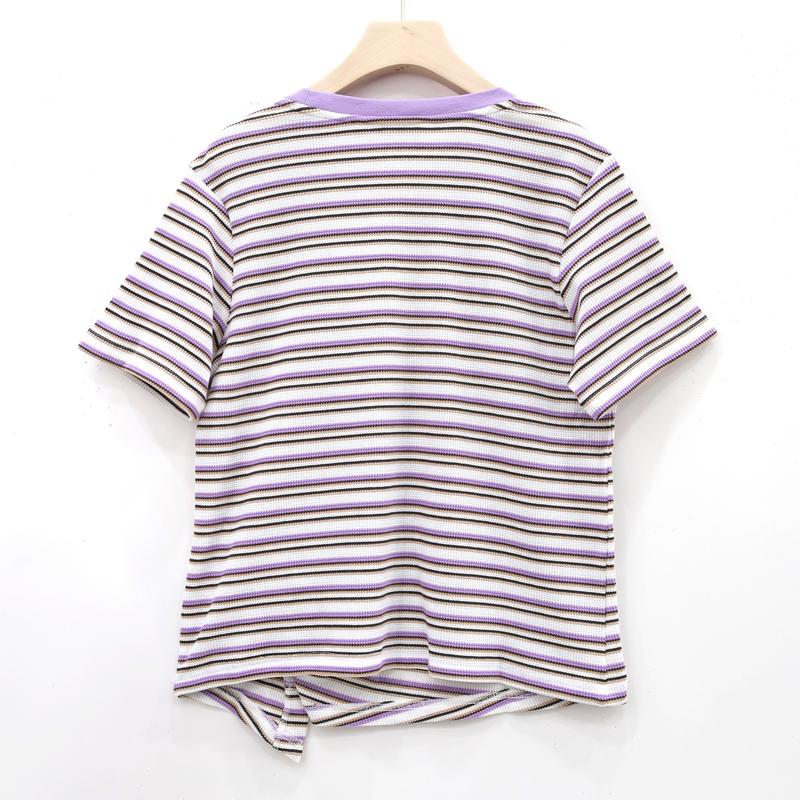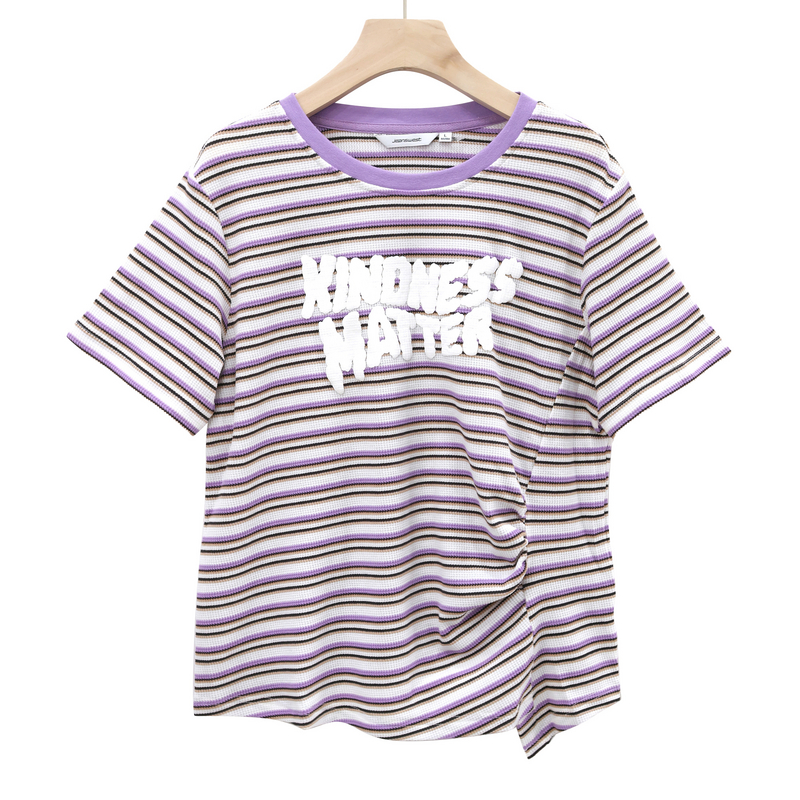JW真维斯女装春夏季新款可爱俏皮柔软华夫格圆领织间短袖T恤