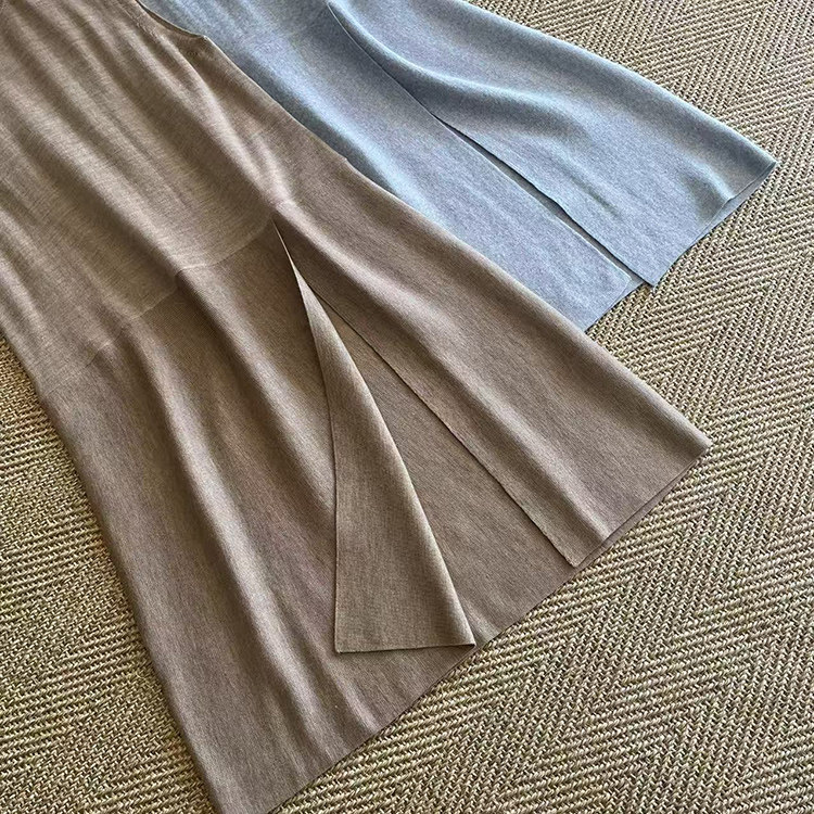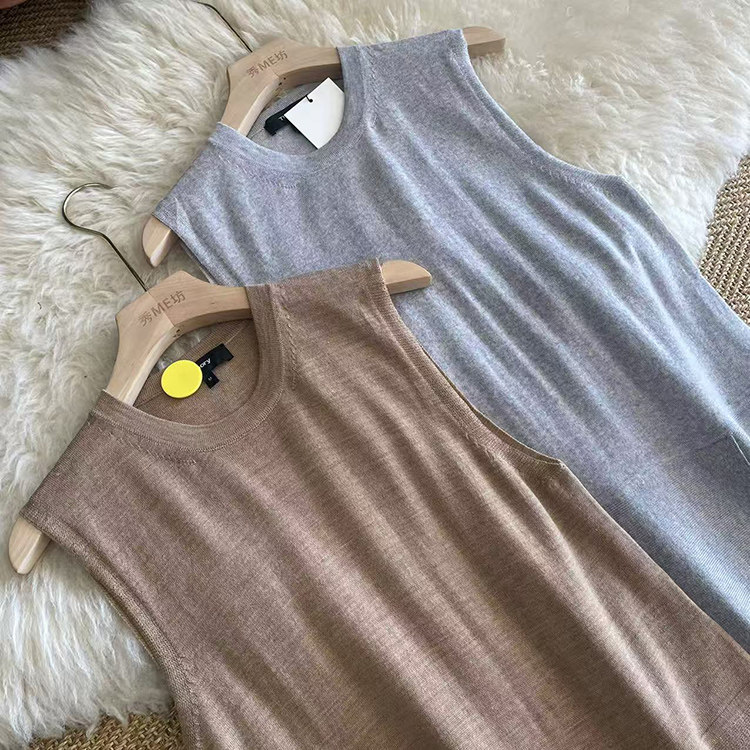 打底裙~羊毛连衣裙无袖百搭背心裙直筒修身显瘦针织长裙开叉裙TH