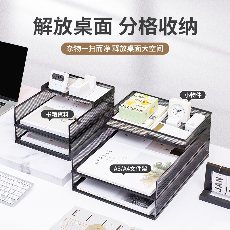 金属文件架收纳盒A3A4办公桌面收纳置物架多层大容量书架资料分类