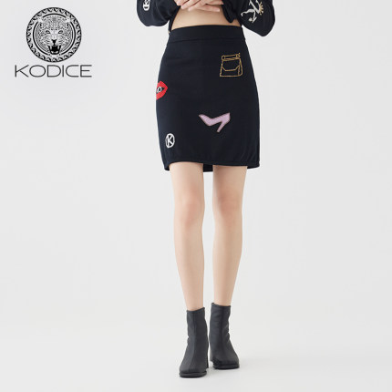 KODICE秋冬新品针织半身裙女缝钻气质宽松直筒短裙时尚半裙A字裙