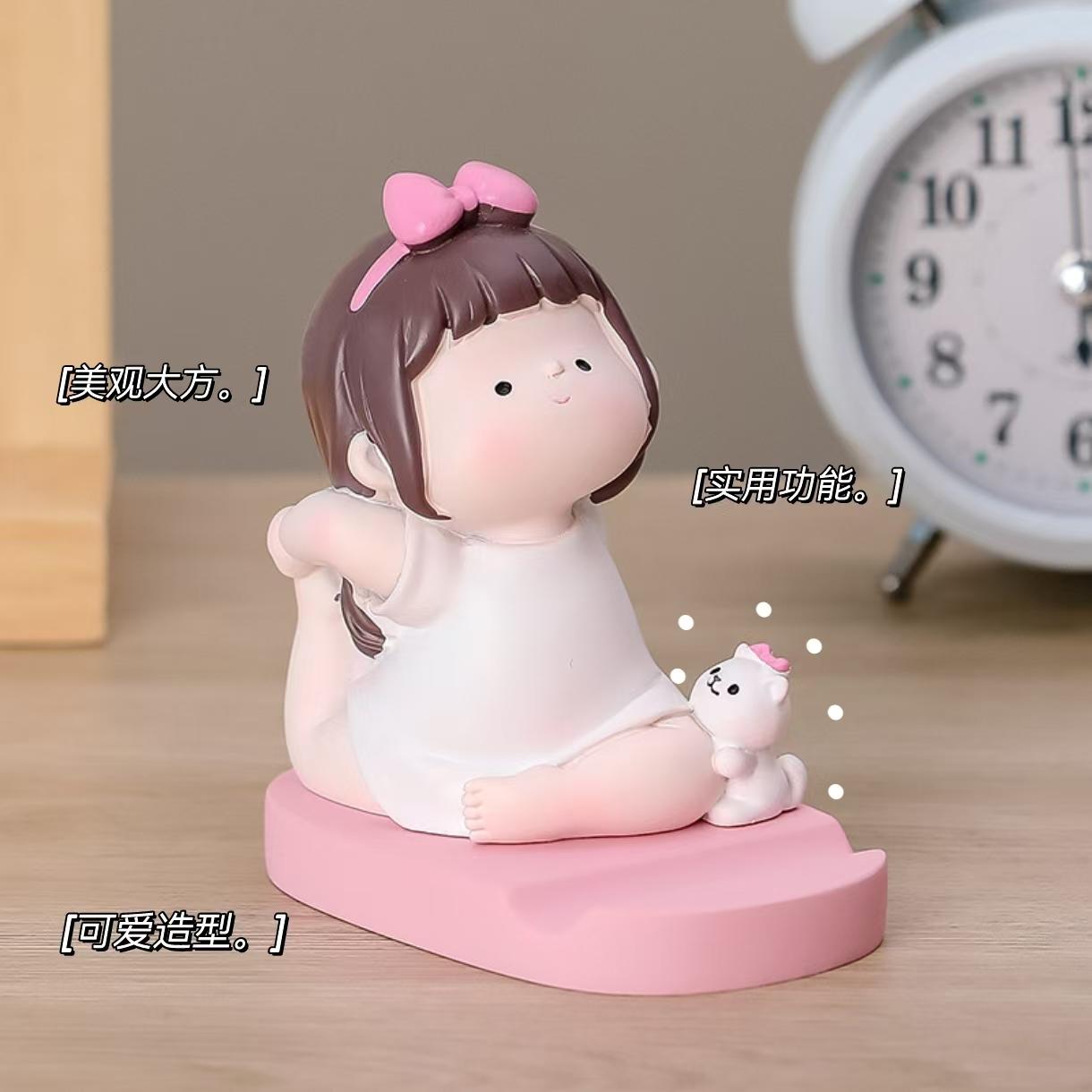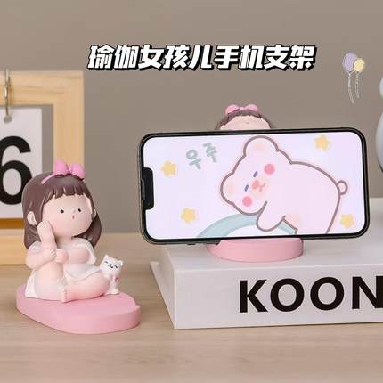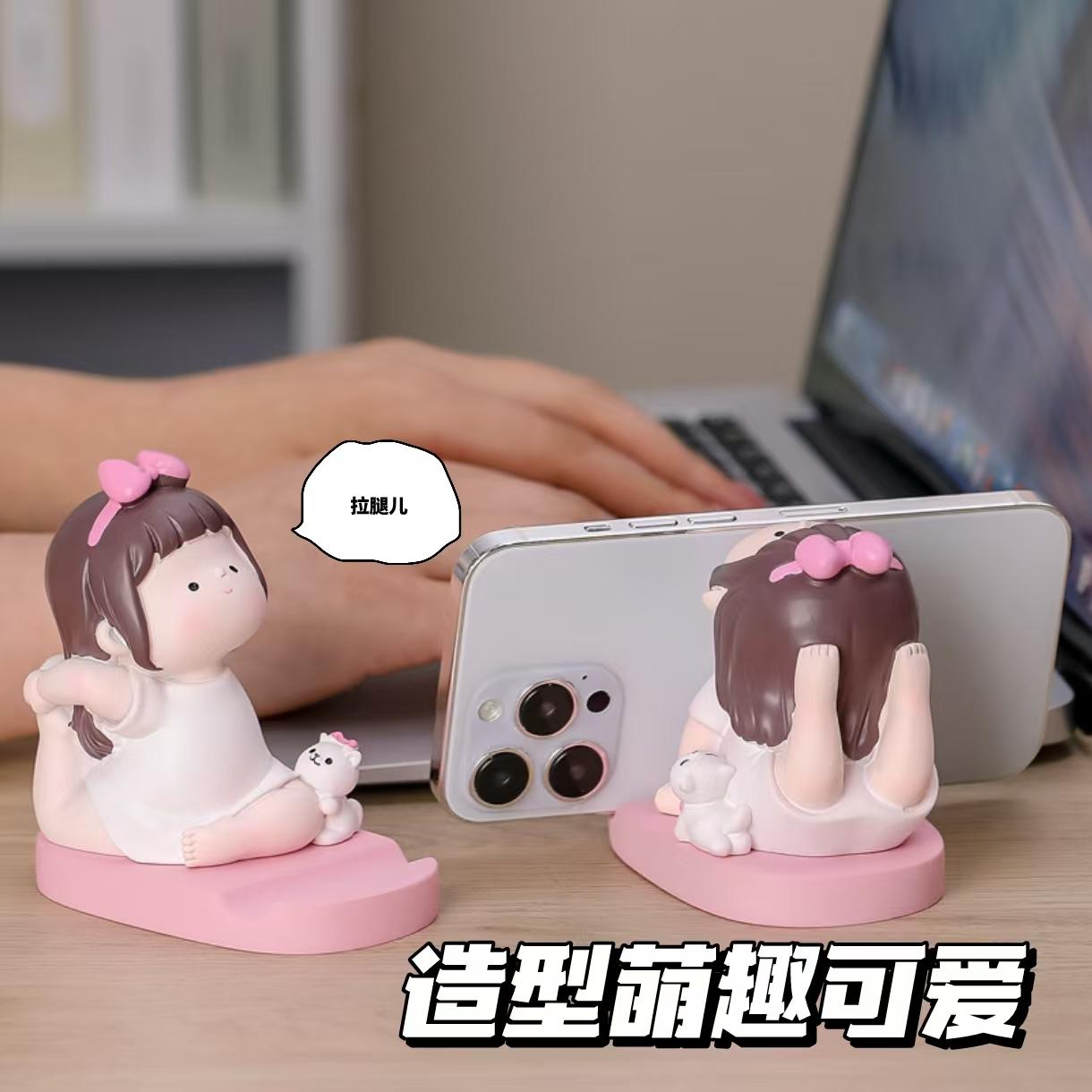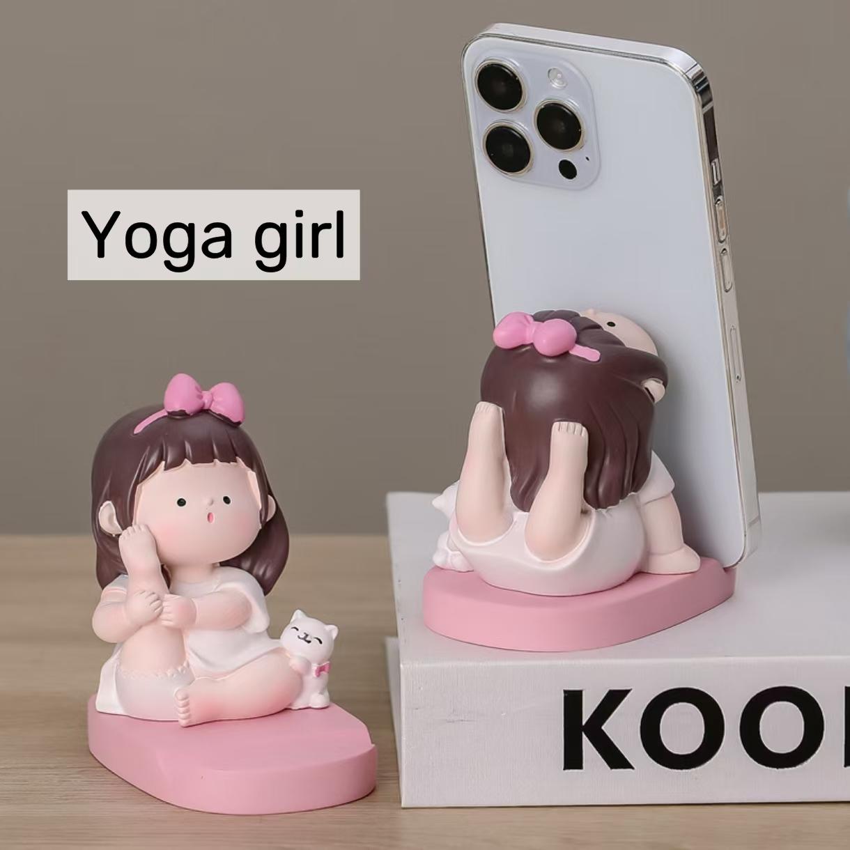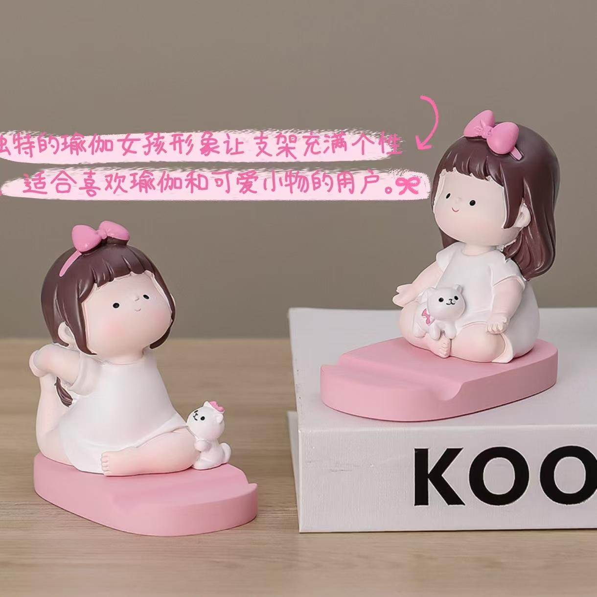 可爱瑜伽女孩手机支架摆件工位办公桌面创意情绪稳定解压治愈礼物