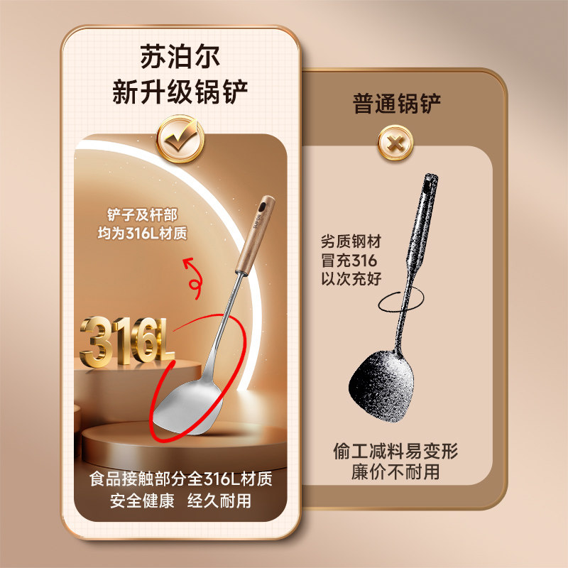 苏泊尔锅铲家用316L不锈钢炒菜的铲子铲勺漏勺汤勺家用炒勺铁锅铲