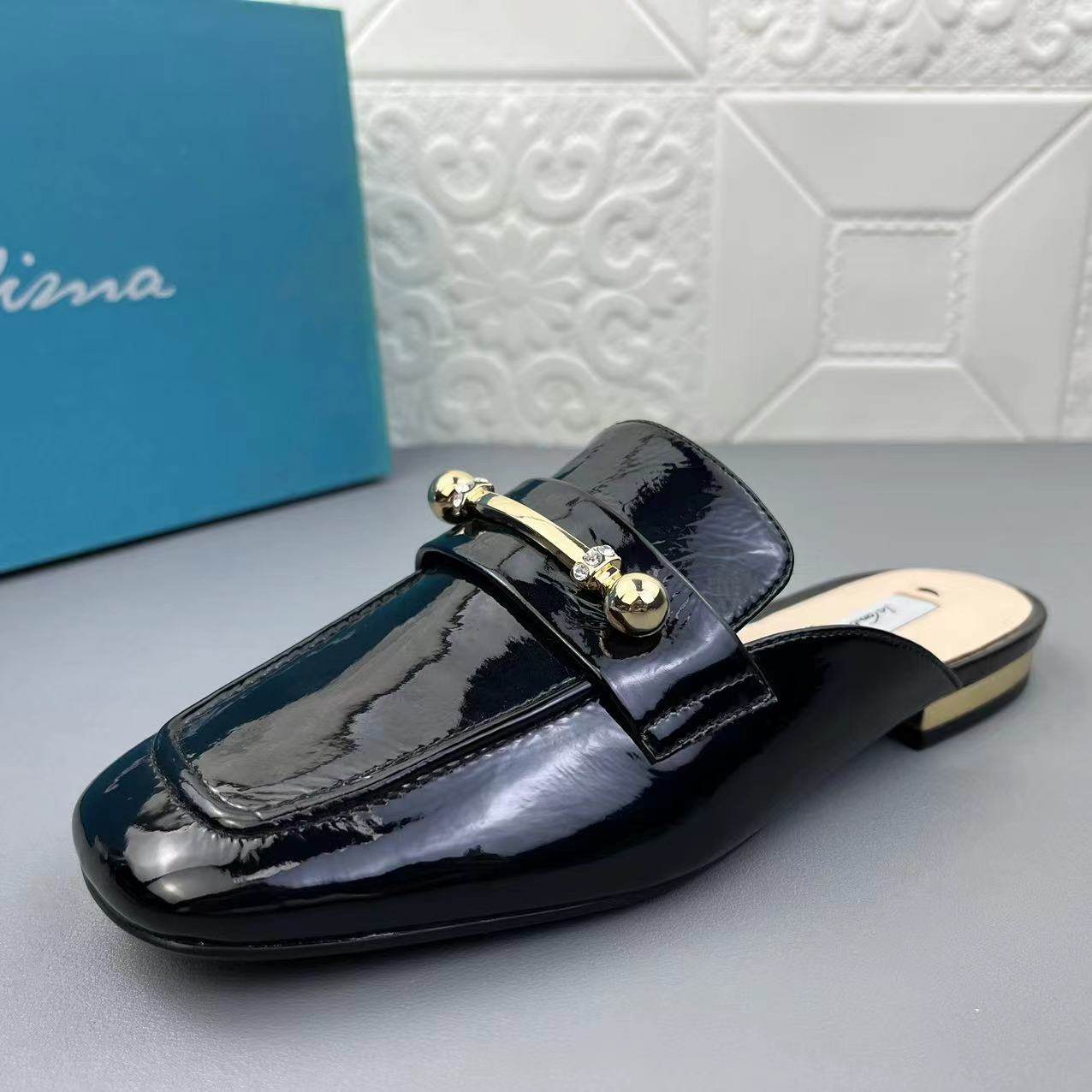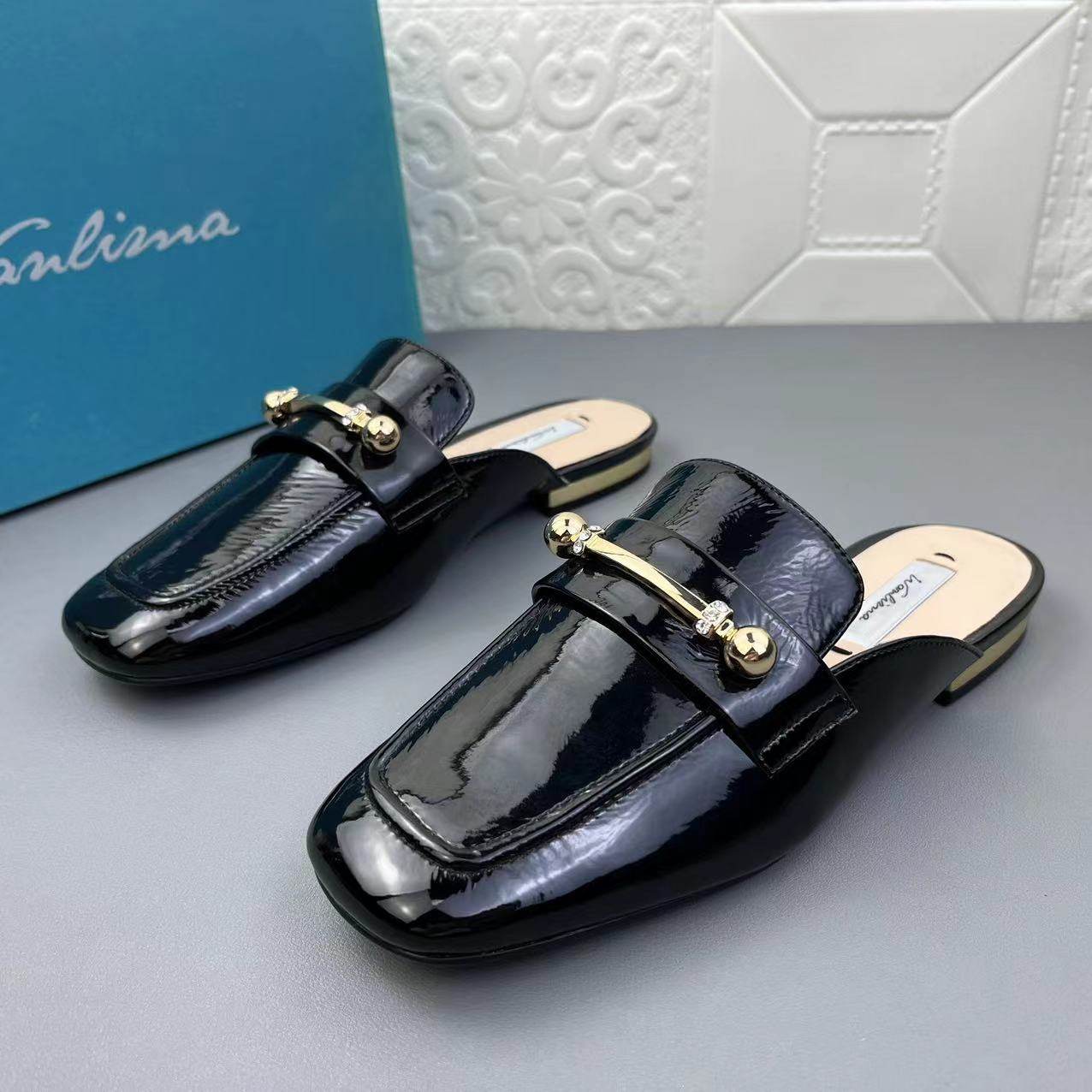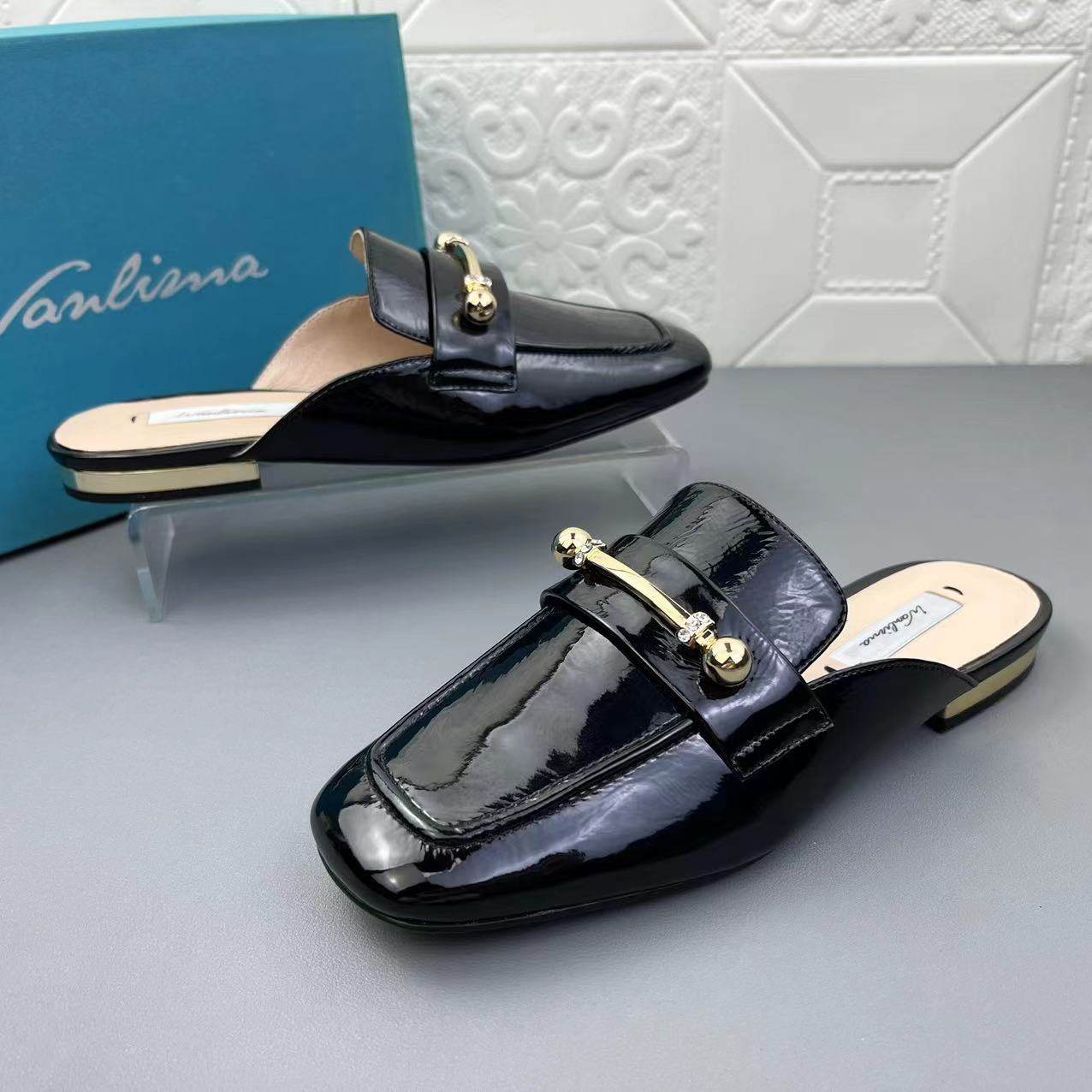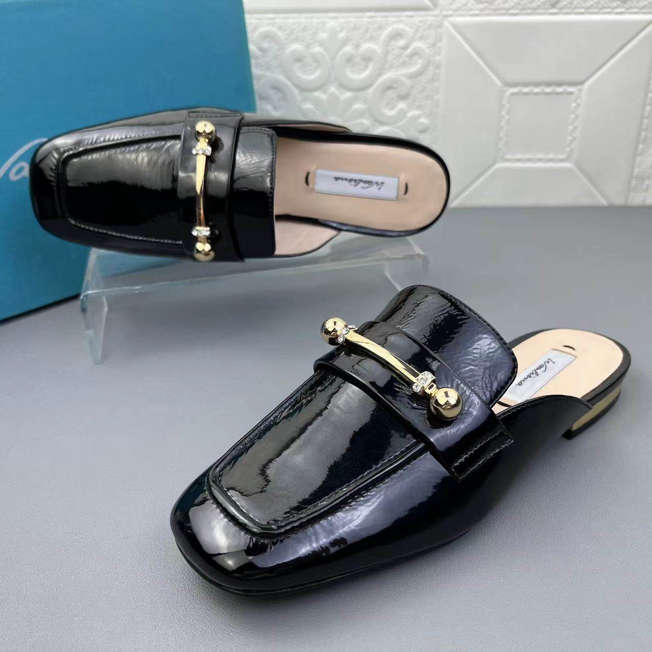 万里马正品处理牛皮女鞋包头拖鞋