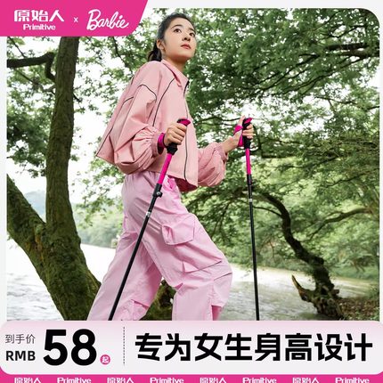 原始人芭比登山杖女款折叠手杖爬山拐杖碳素超轻伸缩专业户外徒步