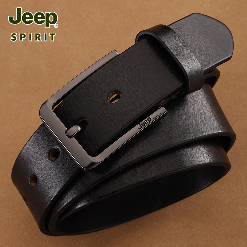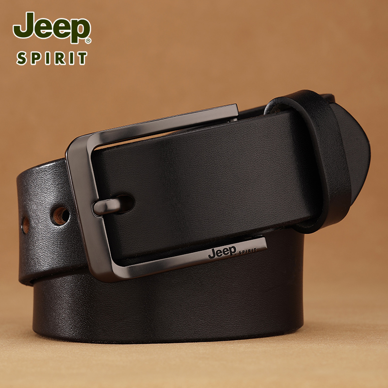 JEEP SPIRIT皮带男士真皮针扣头层牛皮腰带男黑色百搭商务裤带