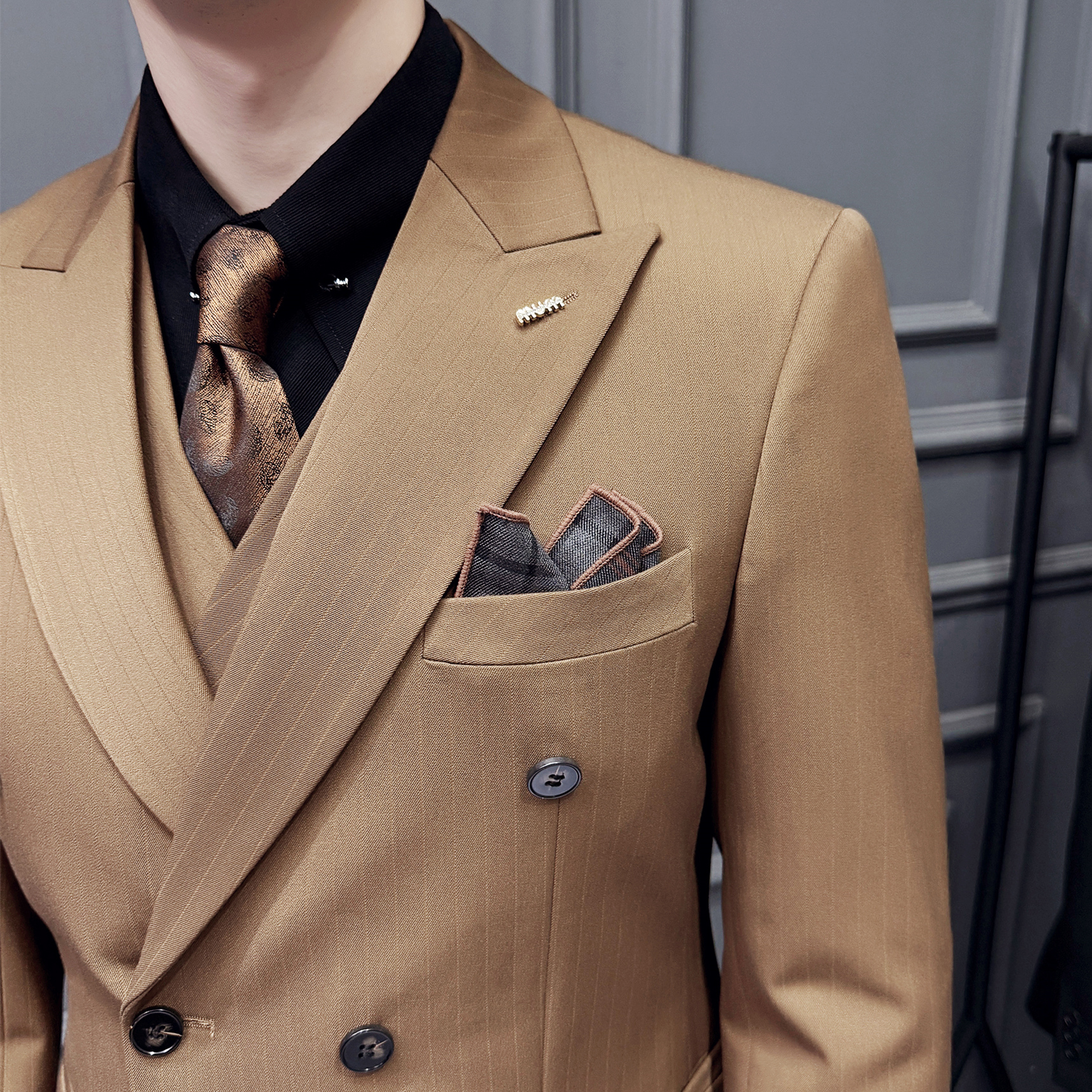 高级感港风商务通勤休闲西装男套装韩版婚礼修身痞帅双排扣男西服