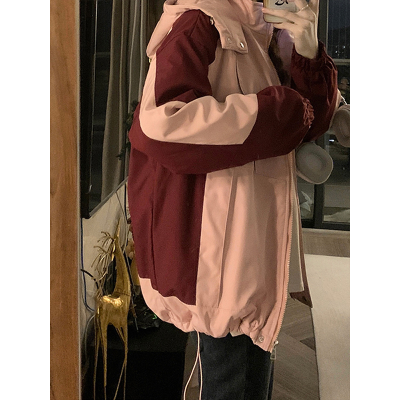 300斤大码胖mm美式夹棉棉服女春秋新款加厚派克服粉色保暖外套女