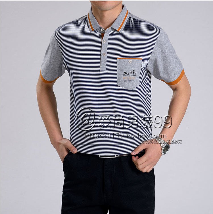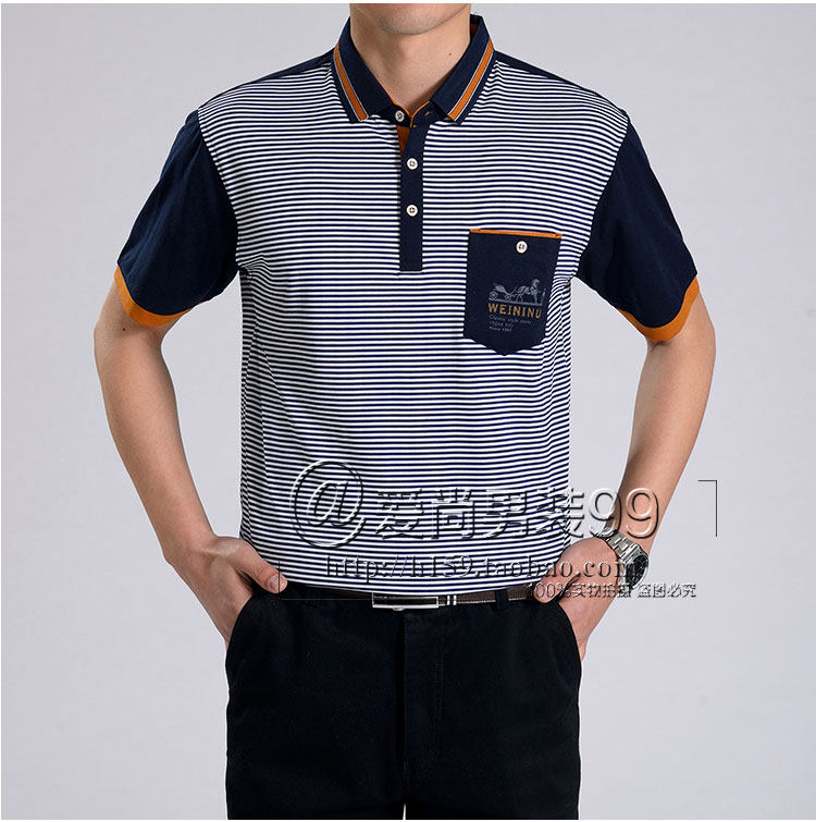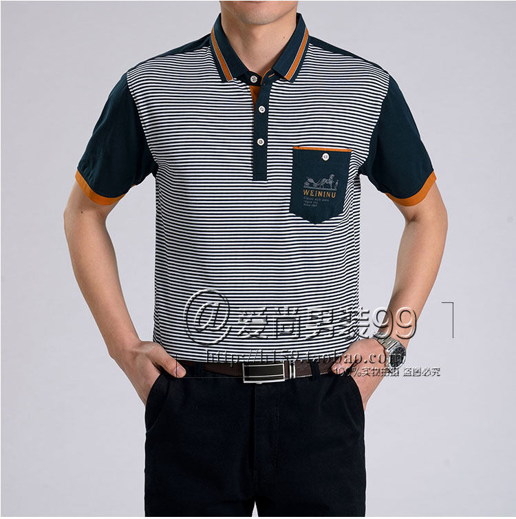 夏季中老年男装短袖T恤父亲节爸爸装中年男士翻领体恤衫口袋
