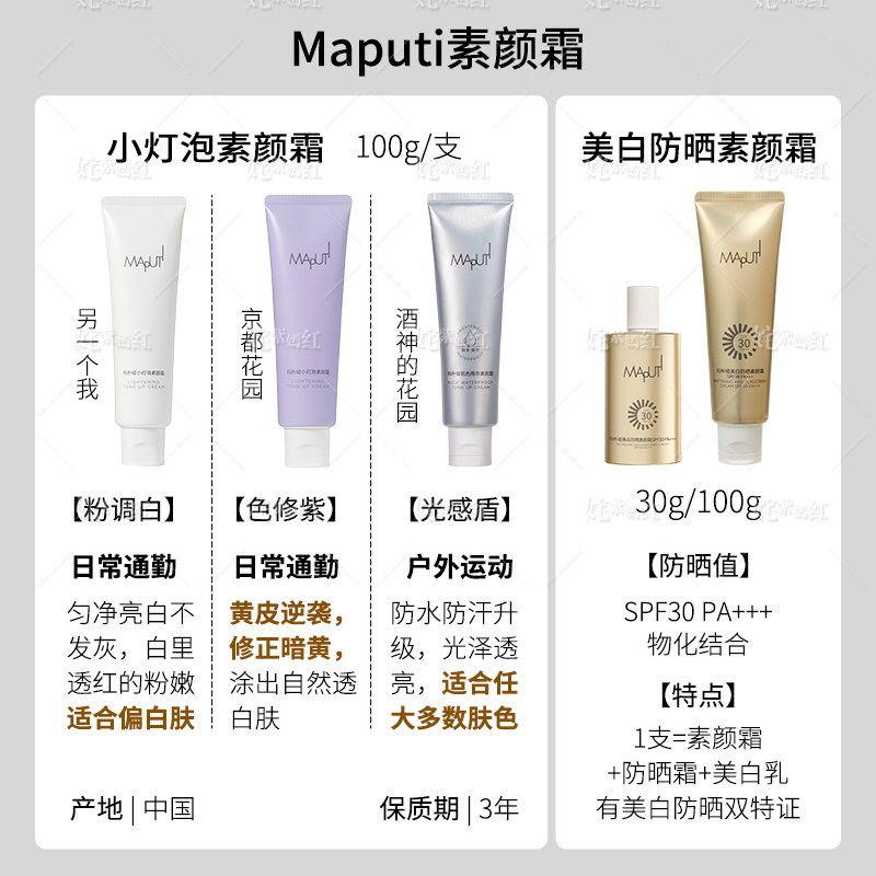 美白防晒双特证!maputi玛朴缇身体素颜霜隔离遮瑕三合一妆前乳