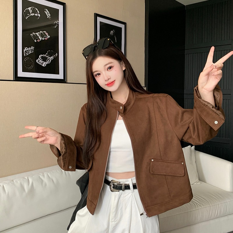 大码美式复古外套女秋季2025新款高级感气质夹克胖MM遮肉显瘦上衣