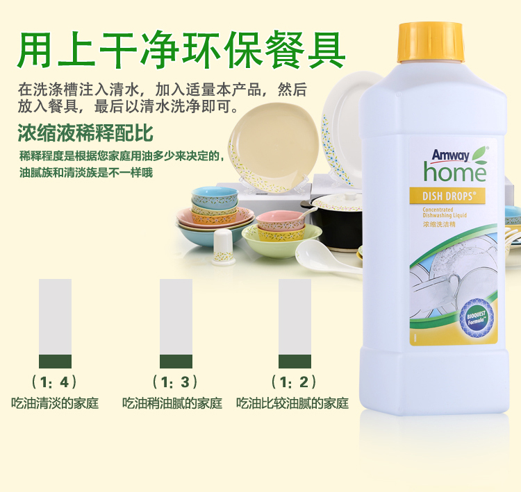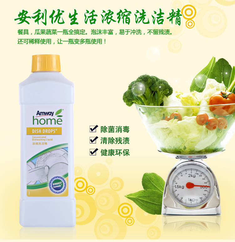安利优生活浓缩洗洁精安利不伤手洗碗餐具果蔬清洁剂1L碟新包邮