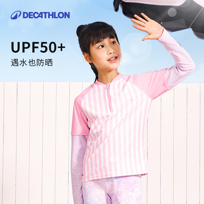 迪卡侬儿童泳衣半拉链防晒泳衣男女童游泳冲浪玩水泳衣泳裤KIDK