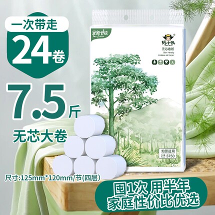 24卷卫生纸家用四层加厚批发实惠厕所卷筒纸无芯卷纸3750克7.5斤