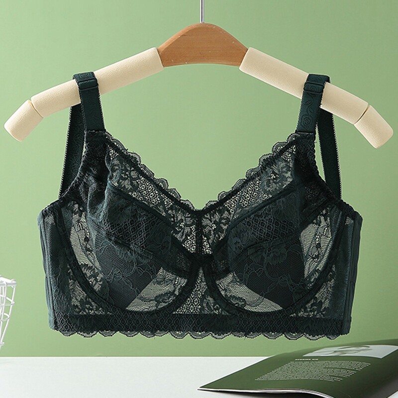 夏季大码超薄款透气文胸聚拢大胸显小女内衣全罩杯蕾丝软钢圈胸罩