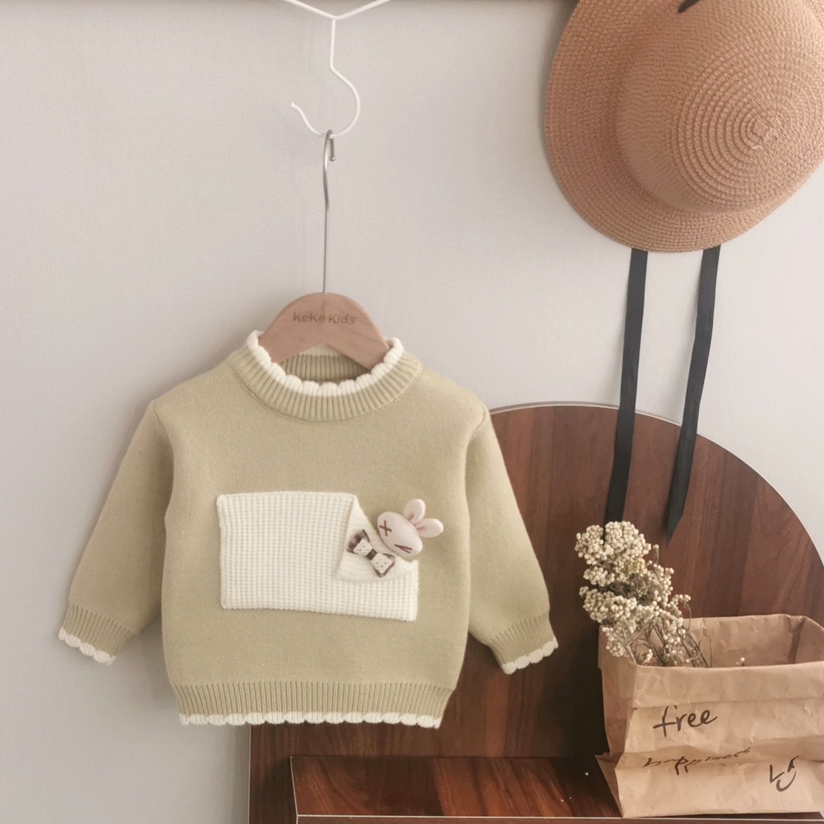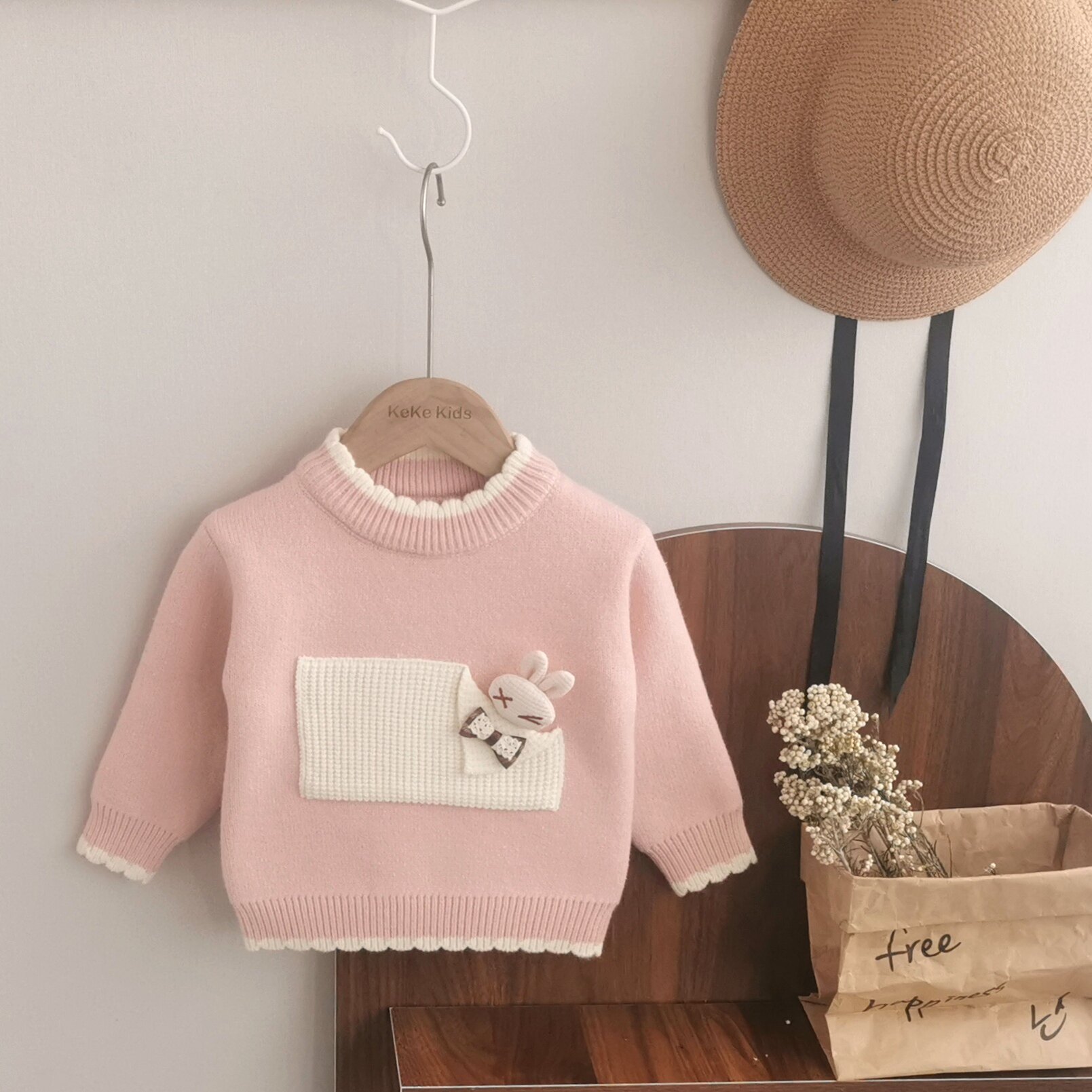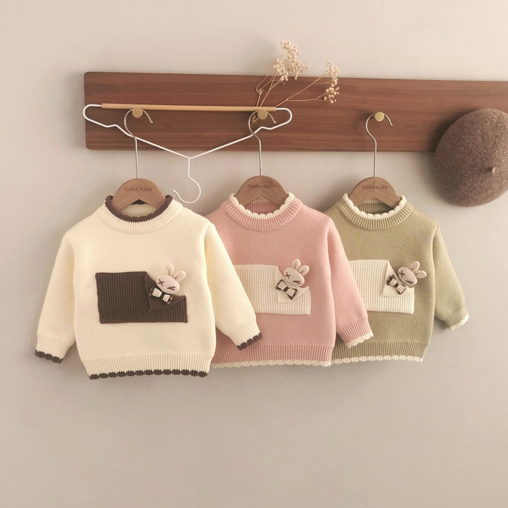 2025秋冬新款女童一体绒毛衣加厚加绒针织衫内搭羊羔绒套头圆领