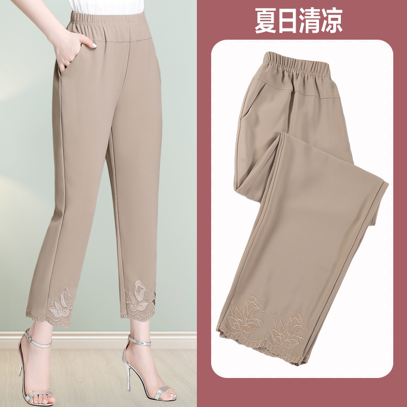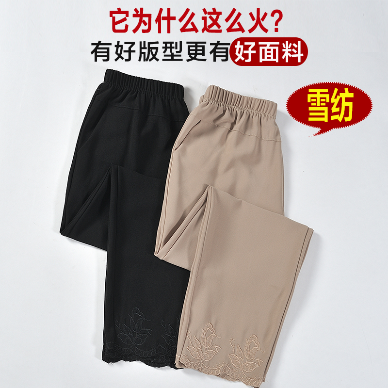 恒源祥官方正品妈妈裤子夏季薄款九分裤高腰直筒中老年人女裤宽松