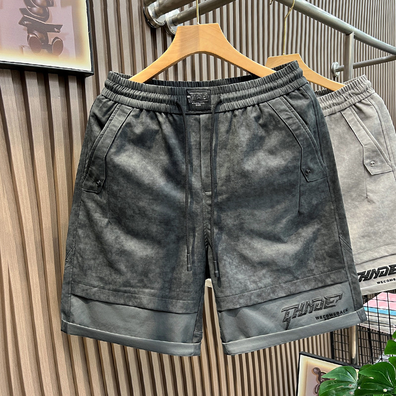 美式高端脏脏灰短裤男士夏季潮牌水洗重磅五分裤潮流宽松休闲中裤