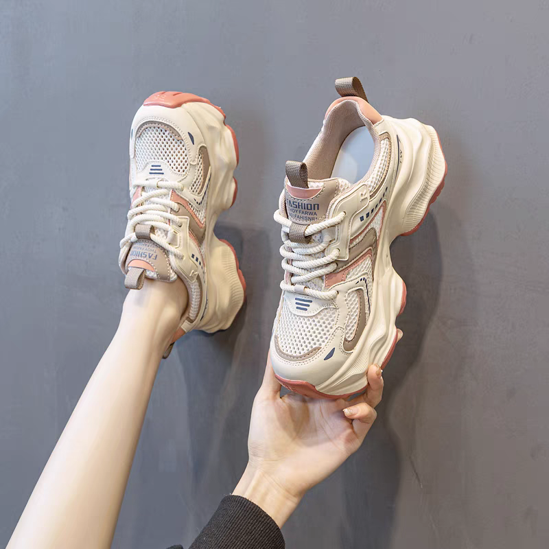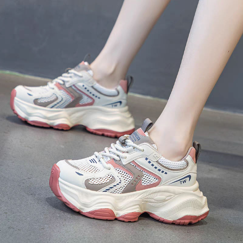 透气真皮轻便网面老爹鞋厚底休闲