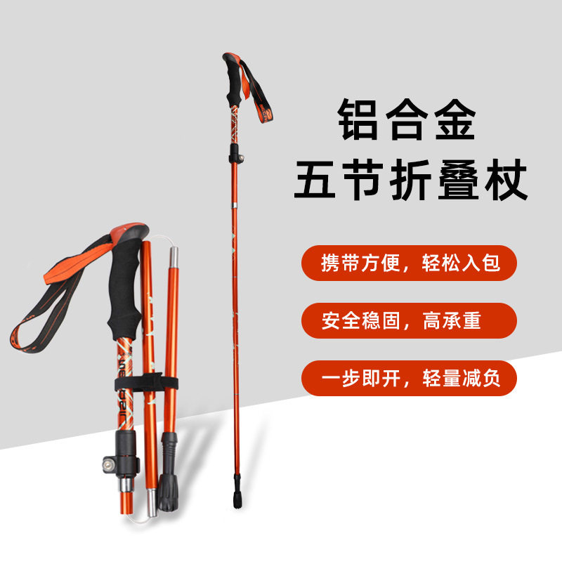 外贸爆款 户外登山旅游五节折叠伸缩登山杖铝合金超短手杖