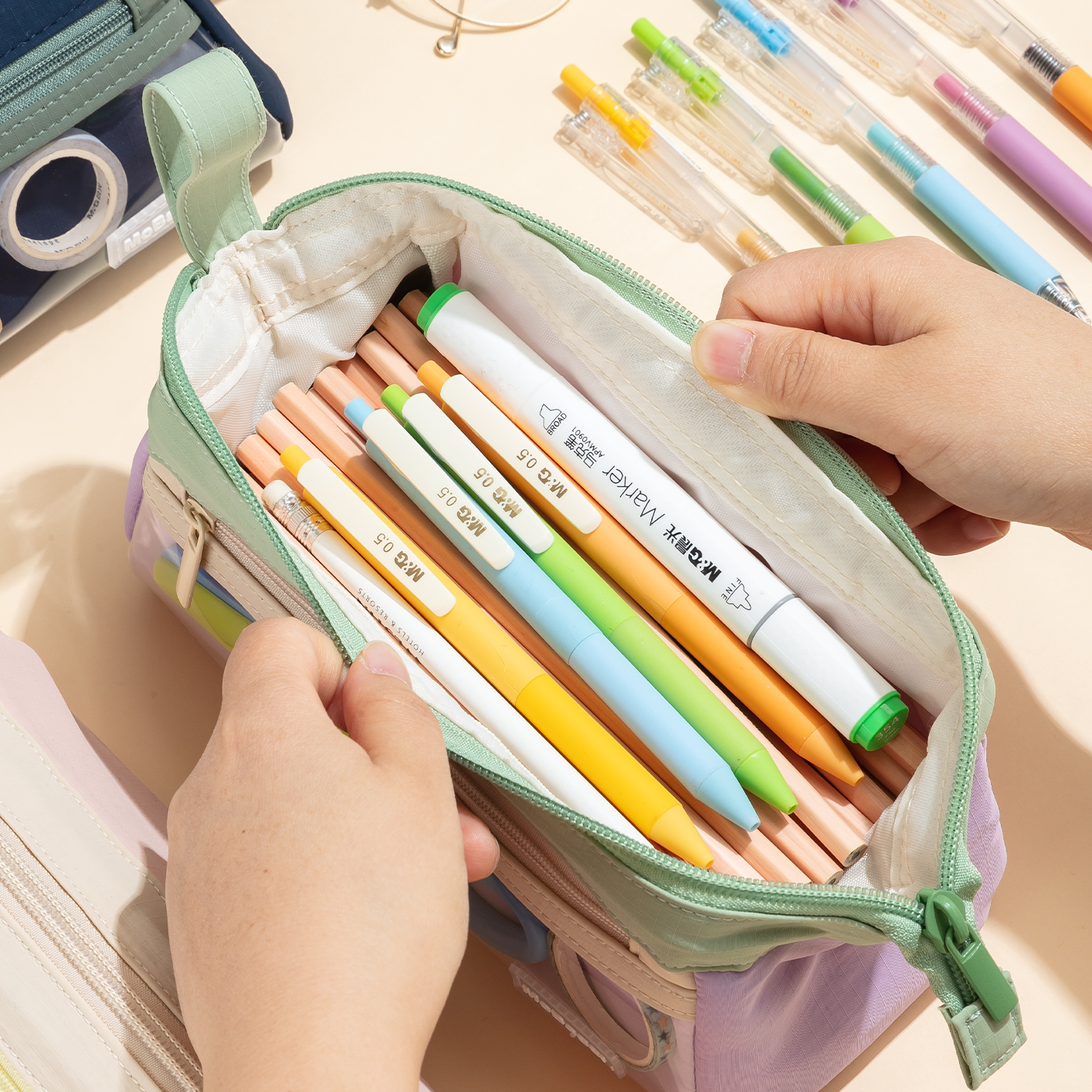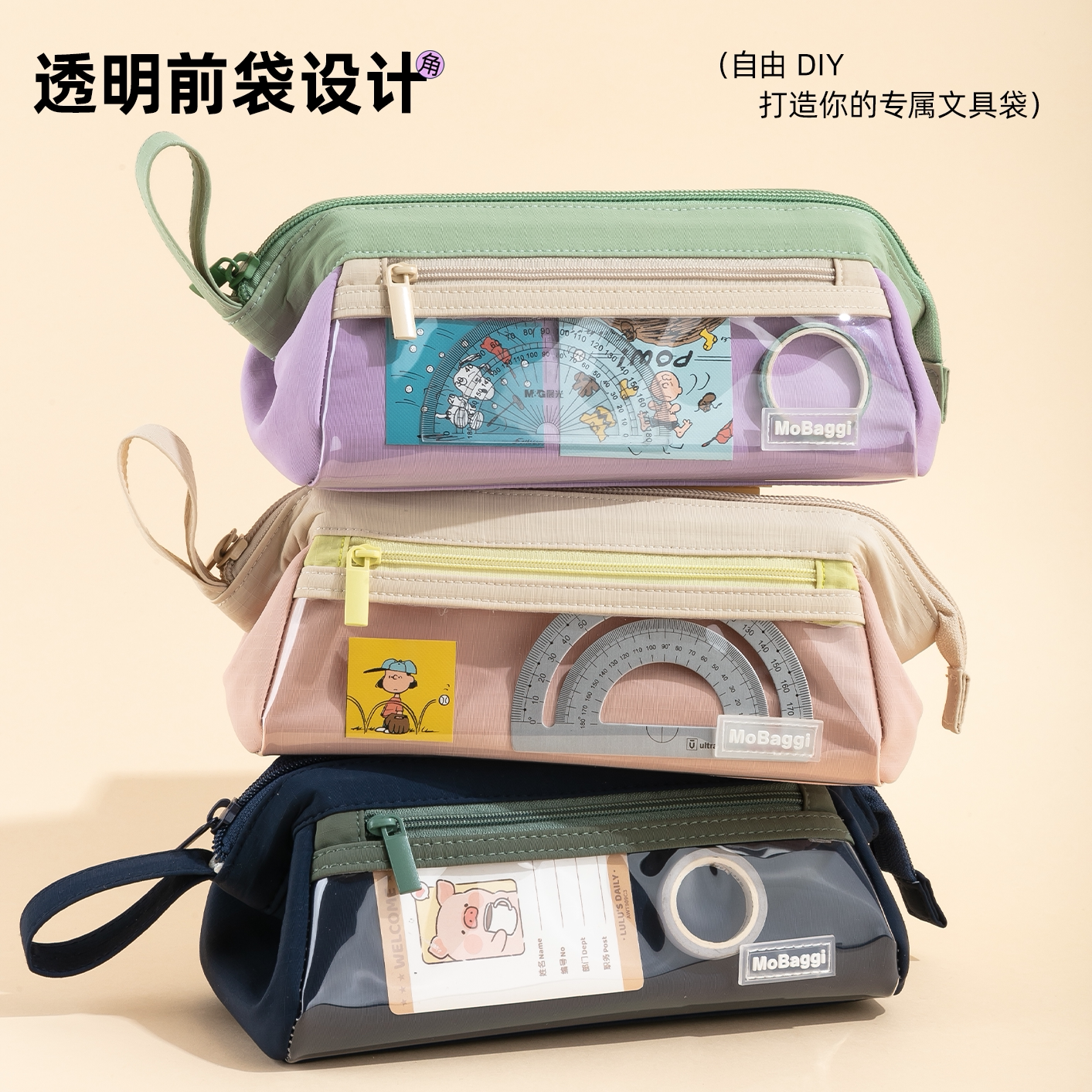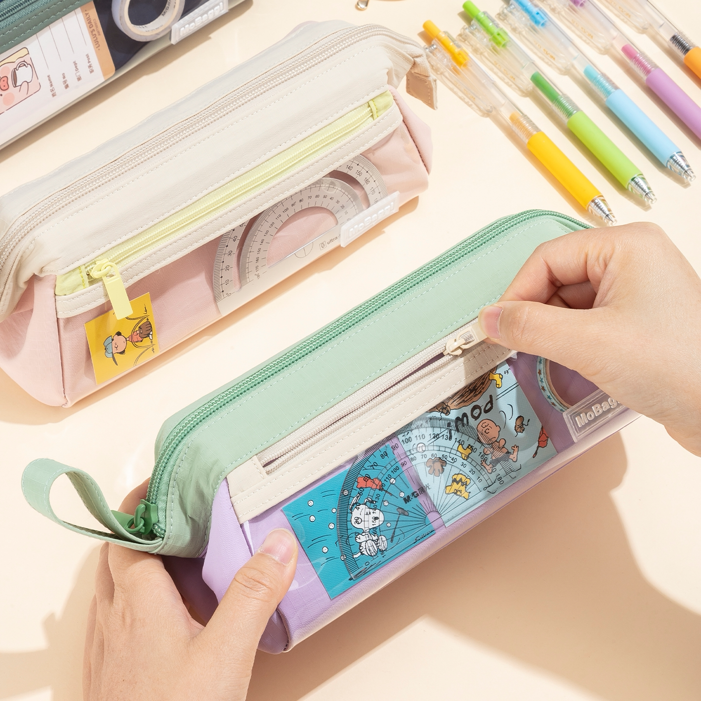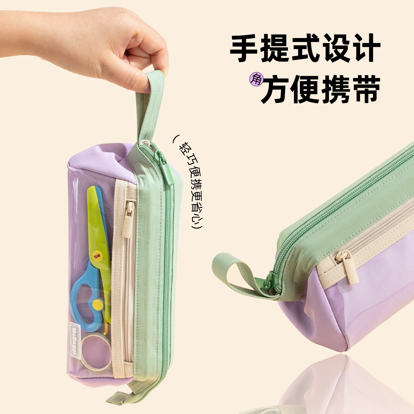 晨光masmarcu三角仓笔袋mobaggi三角大容量双层大开口文具袋简约耐用防水轻盈多功能学生文具收纳袋手提便携