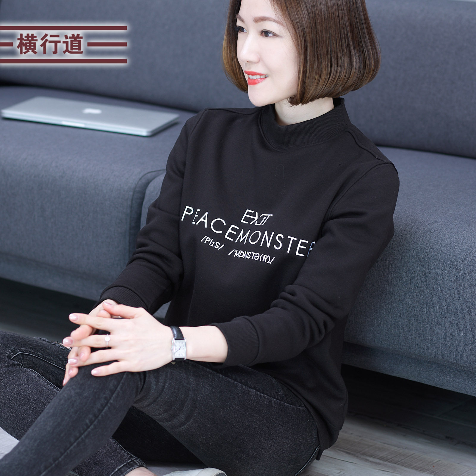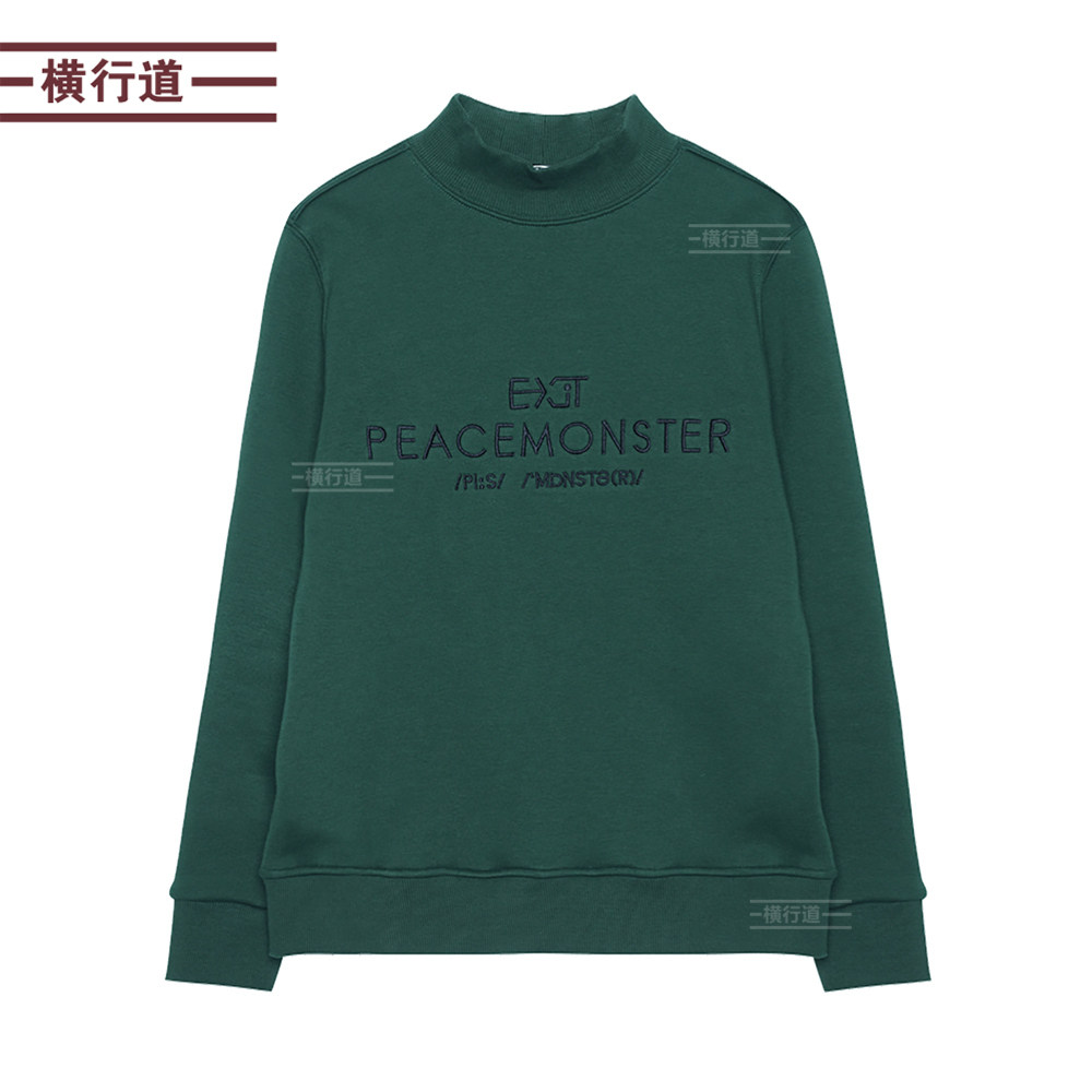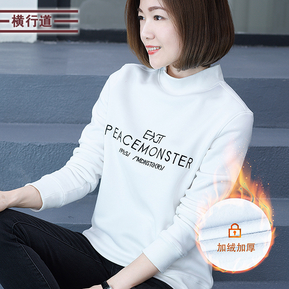 2025冬装新款半高领长袖宽松大码女卫衣字母刺绣加绒加厚保暖上衣