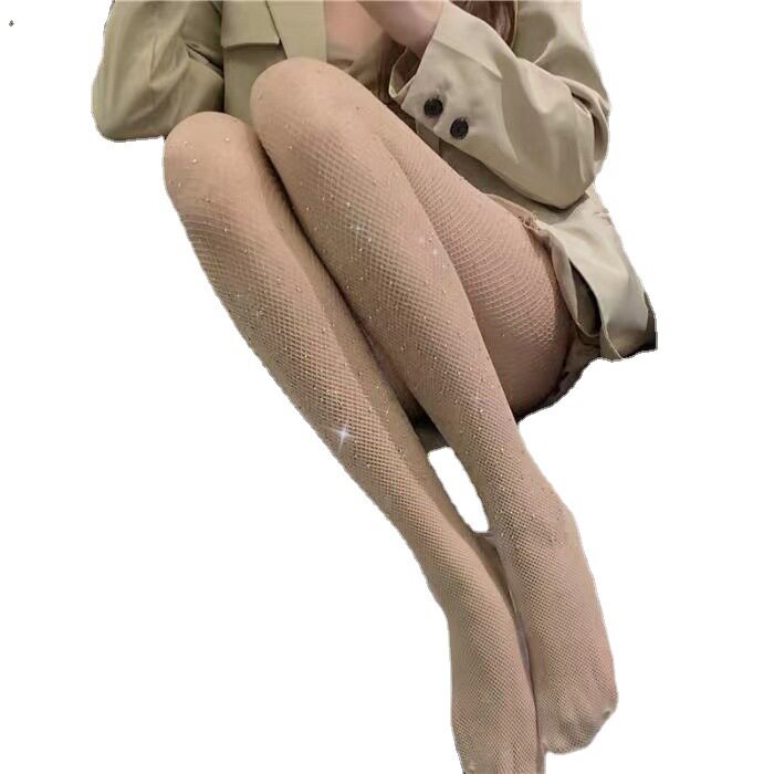网袜跨境薄款镂空烫钻网袜渔网袜潮流性感修身美腿打底袜连裤丝袜