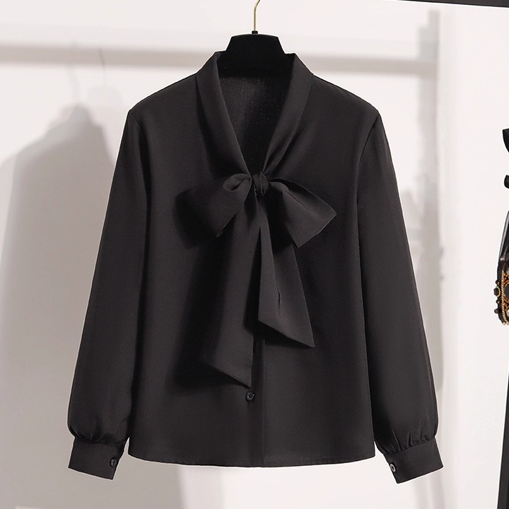 法式衬衫女长袖春秋新款时尚气质设计感小众系带衬衫女百搭工作服