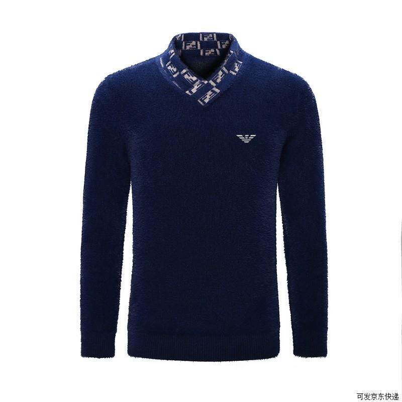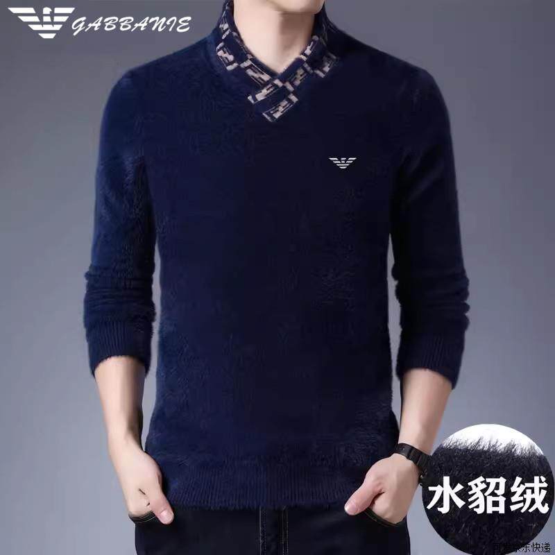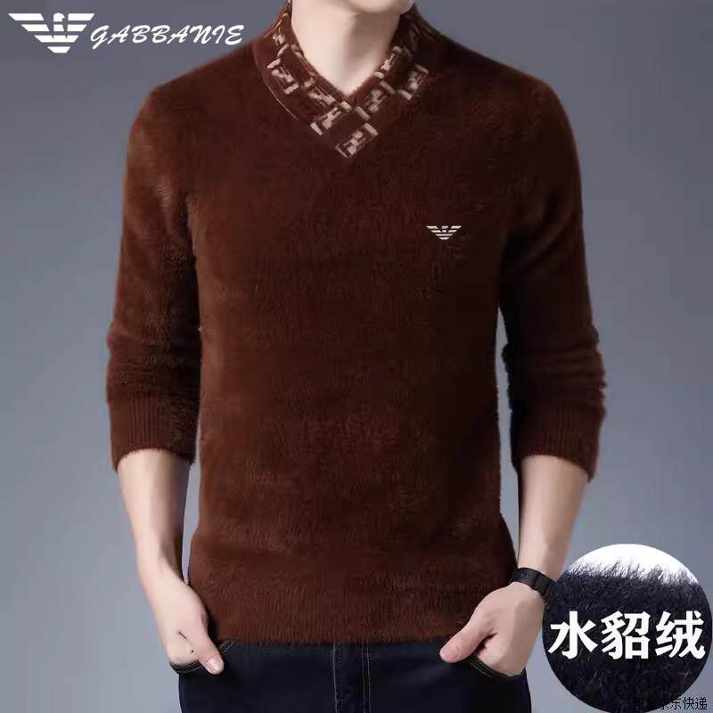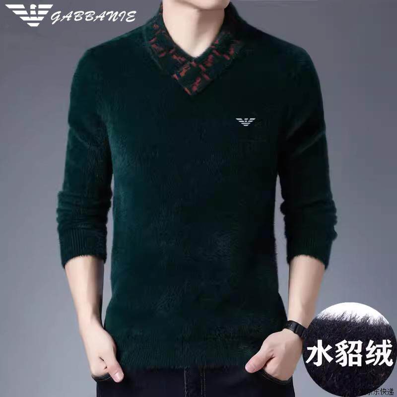 GABBANIE水貂绒毛衣男加绒加厚保暖半高V领男士打底羊毛衫冬潮流