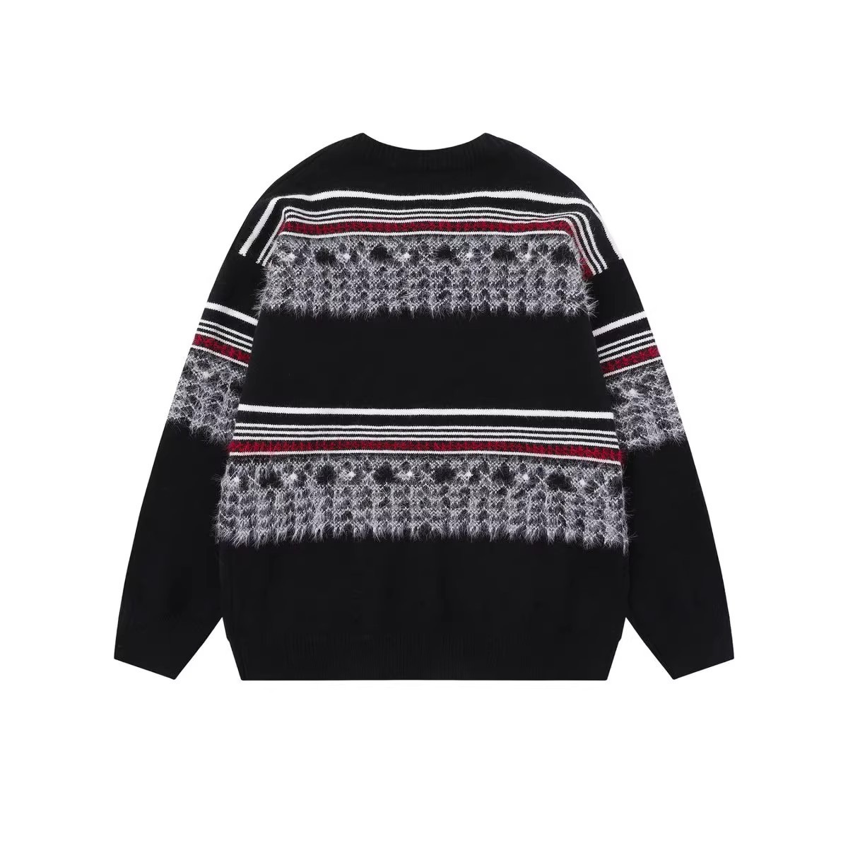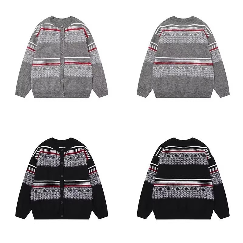 美式复古民族风提花开衫毛衣男女秋冬cleanfit宽松情侣针织外套潮