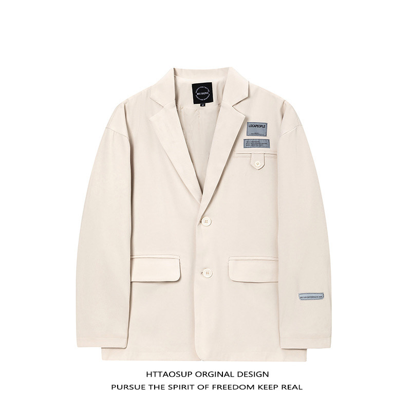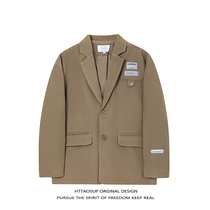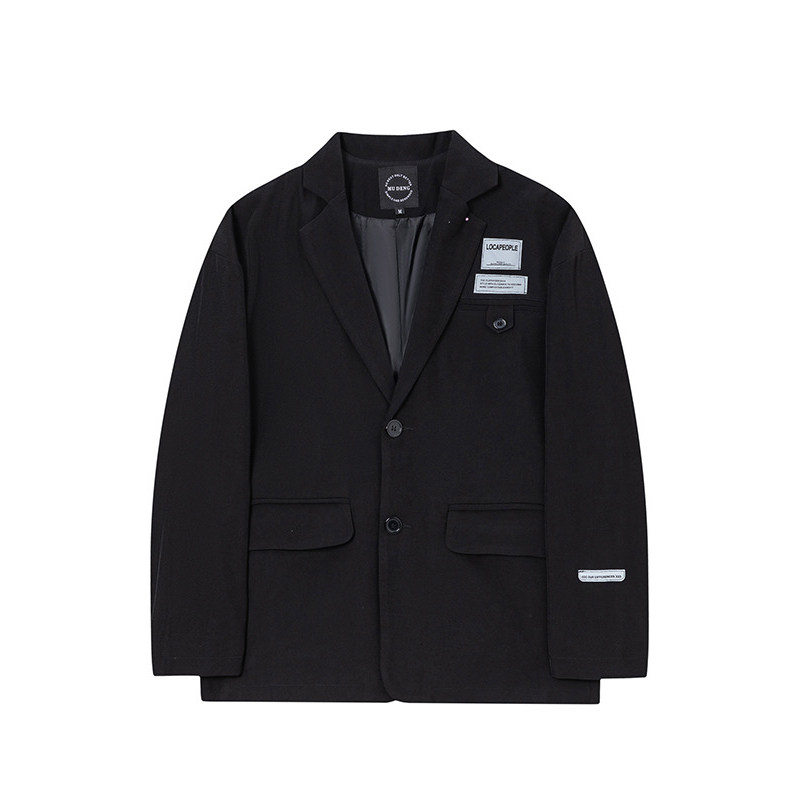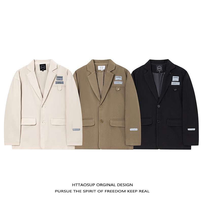ins原宿风标签设计西装外套男女情侣潮流bf宽松休闲炸街痞帅西服